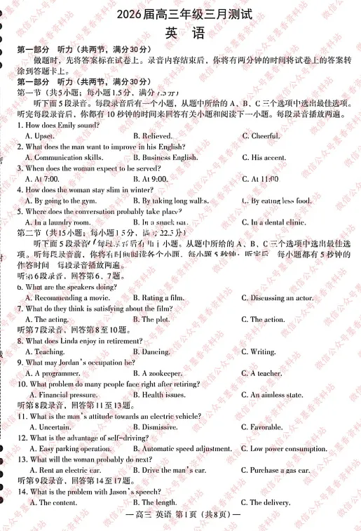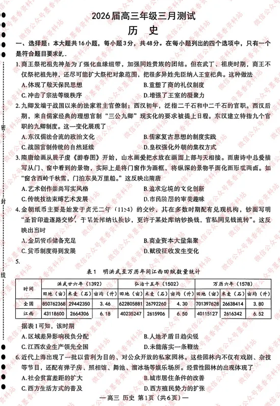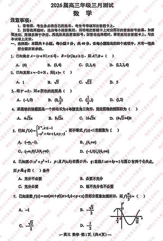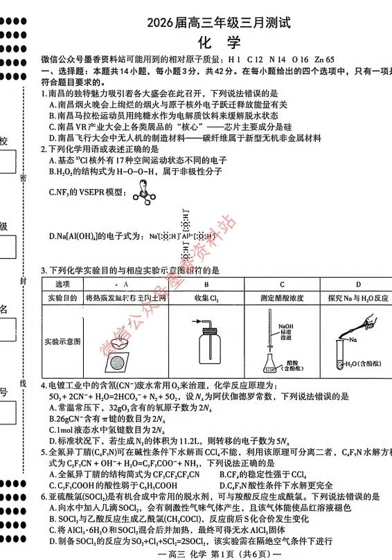 江西省南昌市2026届高三年级三月测试(南昌一模)全科试卷含答案(由于部分科目未考,考后更新)