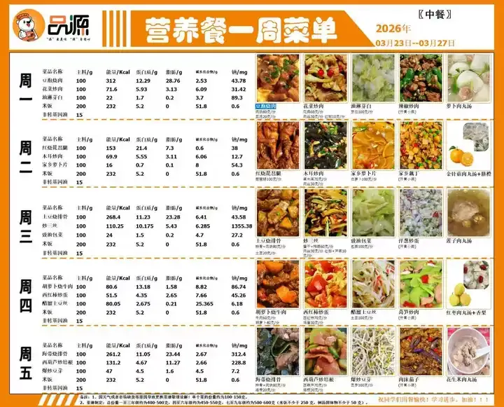 【起·航】南昌市二十八中教育集团洪都学校第四周营养食谱(2026年3月23日-3月27日)