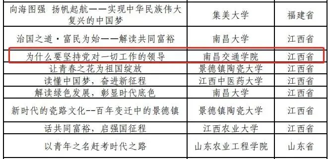 近日,教育部公布了“青春献礼二十大·强国有我新征程”——第六届全国高校大学生讲思政课公开课活动评选结果,南昌交通学院参赛作品《为什么要坚持党对一切工作的领导》荣获全国本科组优秀奖,是江西省六所获得该奖项的高校中唯一一所民办高校。