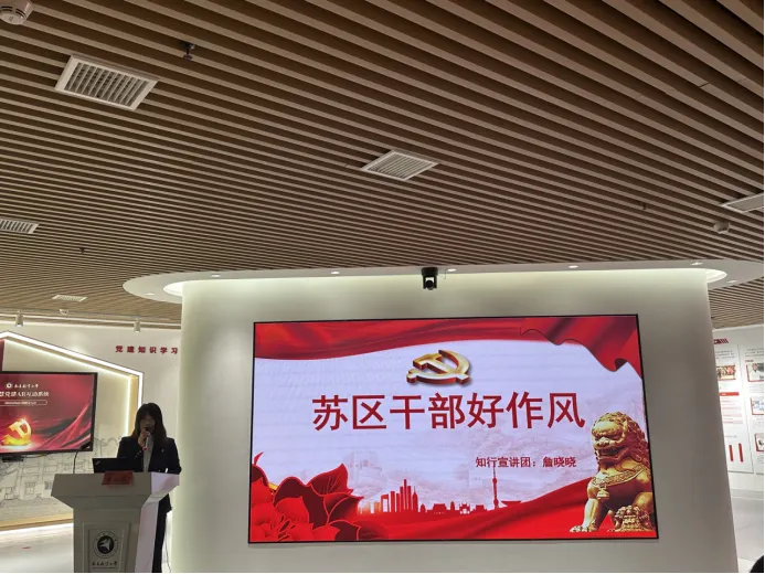 知行宣讲团成员学院2023级研究生詹晓晓以“苏区干部好作风”为主题,讲述了时任苏维埃政府主席的刘启耀以身作则厉行节约,反对铺张浪费,提倡十二分节俭,自带干粮去办公清贫节俭的故事和虽然“腰缠万贯”,却宁愿乞讨度日,也不动一分一毫随身携带的政府经费为革命事业舍身忘我的感人事迹。大家被刘启耀清正廉洁,克己奉公的优良作风所打动,被苏区干部对党忠诚、顾全大局的品质,坚定的理想信念和崇高的信仰所折服,精神上接受了一次洗礼。