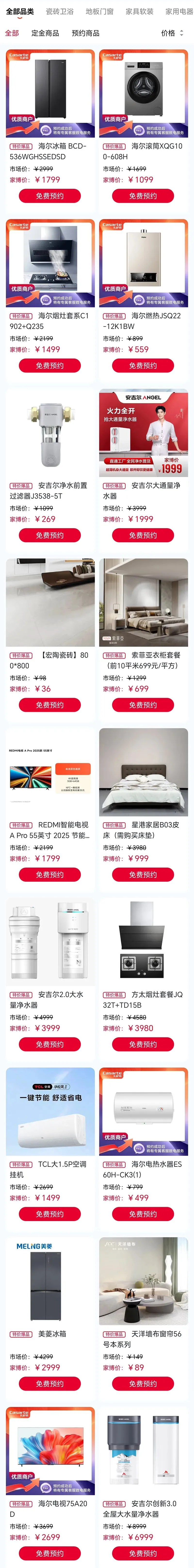 奥克斯空调、安吉尔净水、方太电器、格力电器、海尔卡萨帝中央空调、华帝电器、海信电器、海尔电器、科沃斯机器人、林内热水器、立升净水、老板电器、美菱电器、Panasonic松下电器、沁园净水、帅康厨电、森歌集成灶、天猫精灵、TCL电器、万和热水器、万家乐厨电、威能壁挂炉、西门子家电、小米;