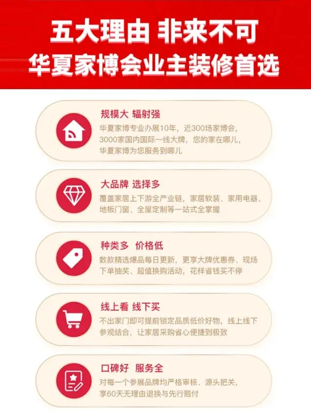 诺:60天无理由退货,华夏家博为您保驾护航(24小时服务热线,2小时给出解决方案)