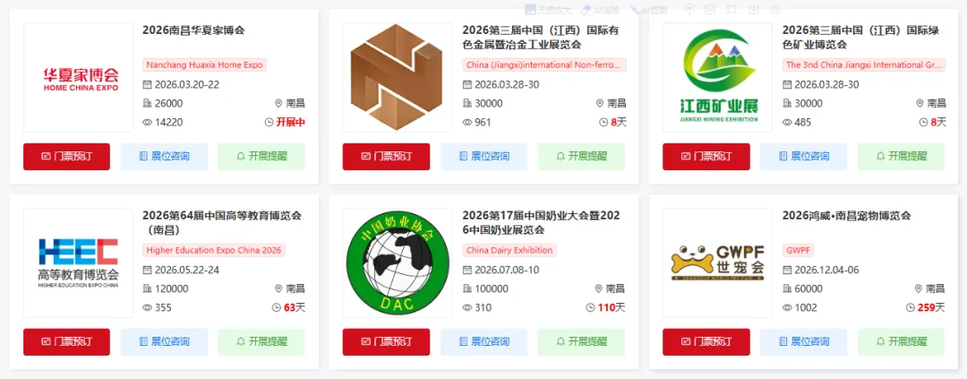关注【展会门票2024】微信公众号,在聊天对话框内回复【南昌展会】查看近期南昌最新展会信息、门票/展位咨询预约入口