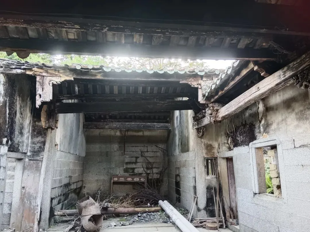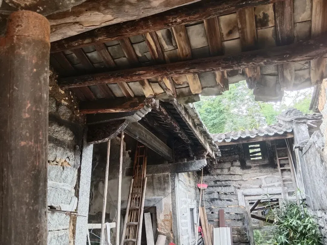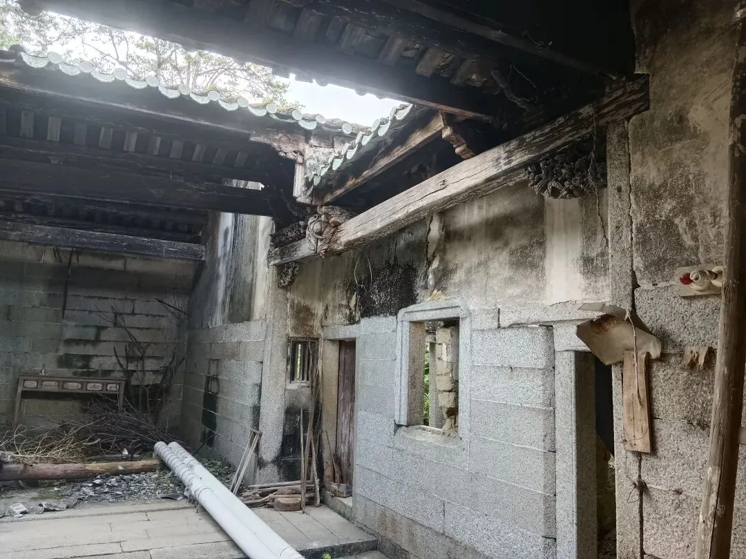 走近南昌楼,高大的门楼上“南昌楼”三个大字依旧醒目,古朴庄重。整座建筑以青石砖砌就,历经百年风霜,墙面与雕刻已变得乌黑深沉,依稀可见当年精湛的工艺。木梁朽坏、部分构件断裂,墙体也出现破损,整座古楼摇摇欲坠,随时有倒塌的危险。