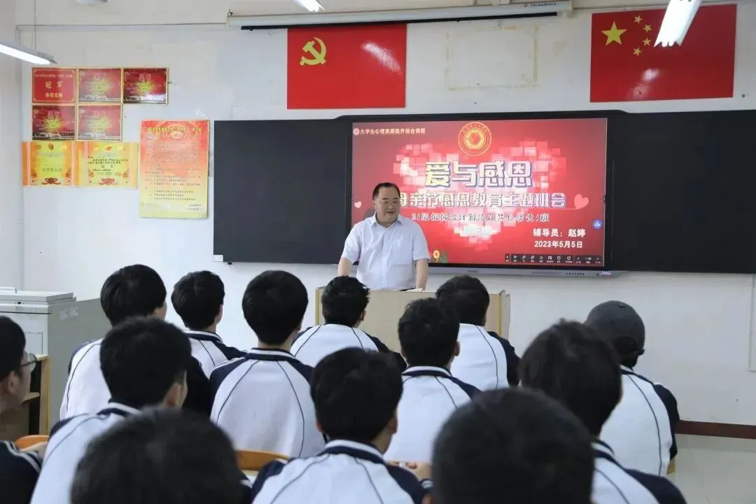 上午10时,邱小林理事长首先来到机电工程学院319教室,参加2021级机械设计制造及其自动化1班的主题班会。辅导员赵婷以“爱与感恩”为主题组织召开母亲节感恩教育班会,教育同学们要感恩祖国、感恩父母、感恩母校,要坚定不移感党恩、跟党走。班会后,邱小林理事长向同学们致以青年节的问候,对主题班会给予充分肯定,随后和同学们分享了自己母亲的感人故事,畅谈了个人的奋斗经历,并与同学们进行了热烈的互动。