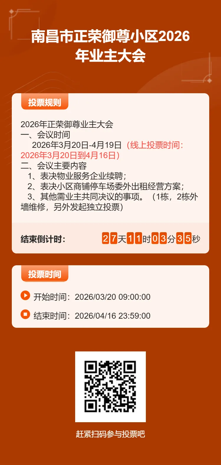 >南昌市正荣御尊小区2026年业主大会开始啦