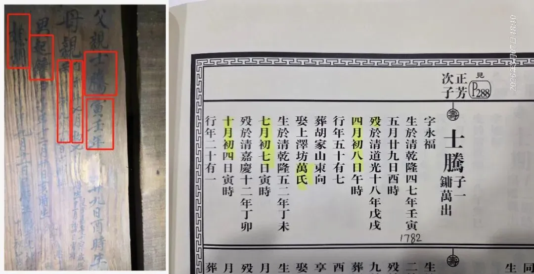 图:门壁上的家谱与纸谱吻合