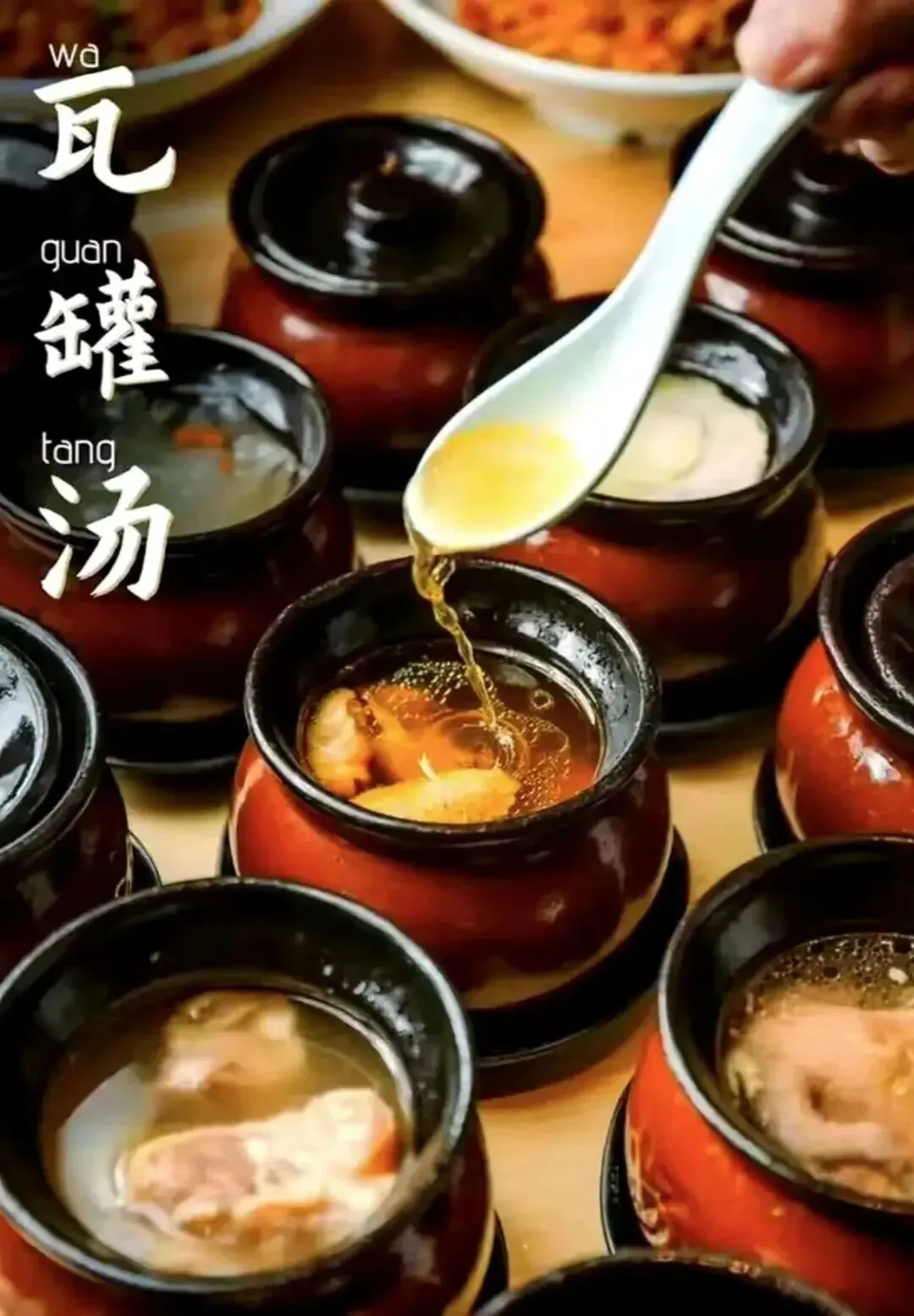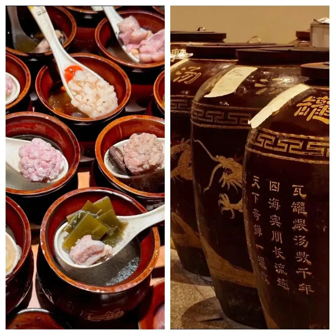 大大的瓦缸里,码着一层层小瓦罐,炭火煨上好几个钟头。揭盖那一刻,热气裹着香气扑面而来。肉饼汤、墨鱼汤、鸡蛋肉饼汤……每一口都是慢功夫煨出来的鲜。