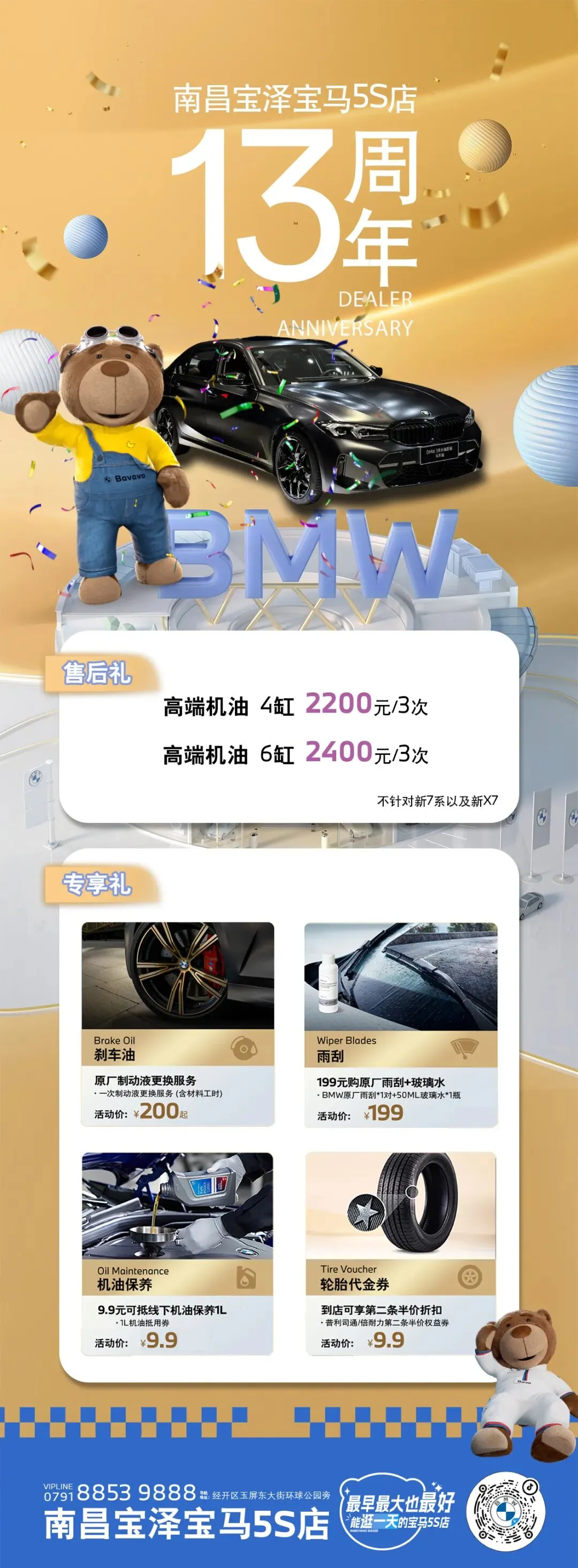 南昌宝泽宝马5S店13周年庆,高端机油套餐、专属福利享不停