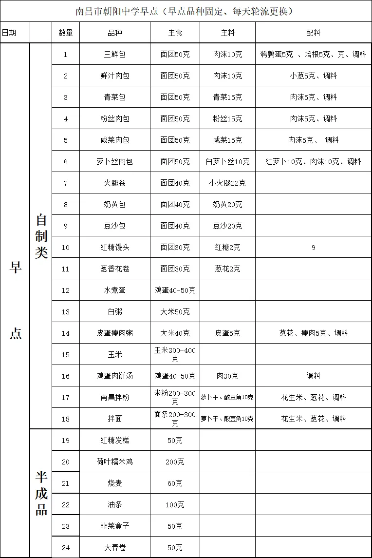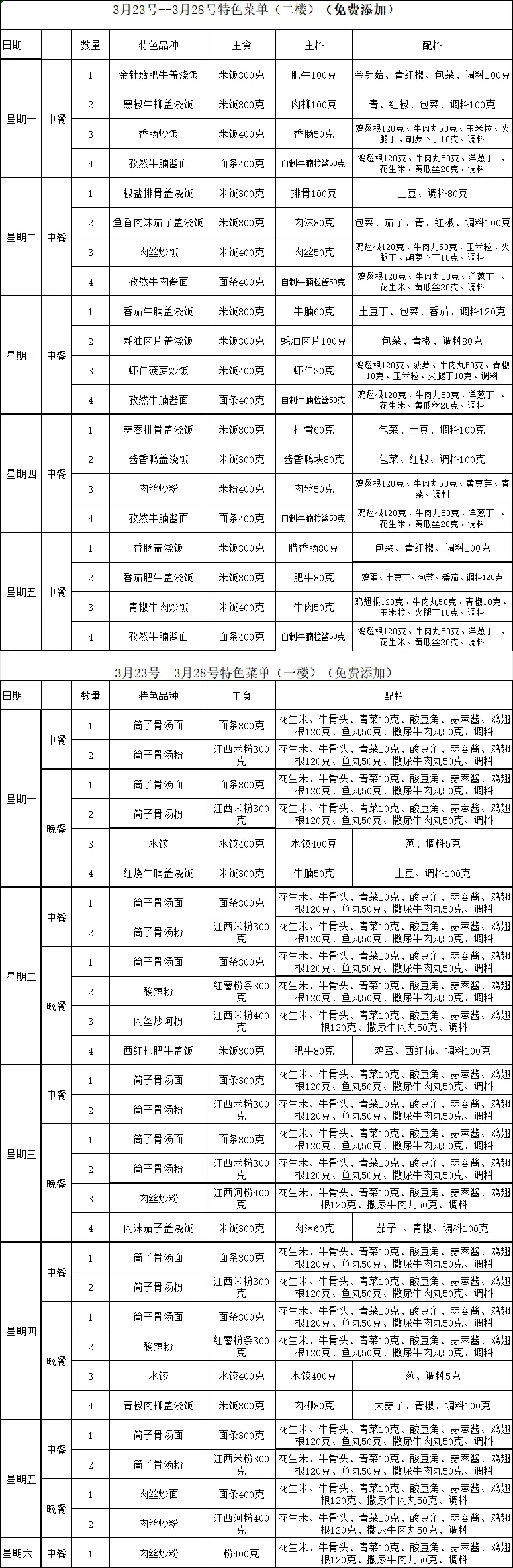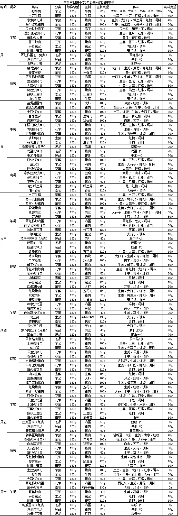 南昌市朝阳中学食堂周菜单(3月23号—3月28号)