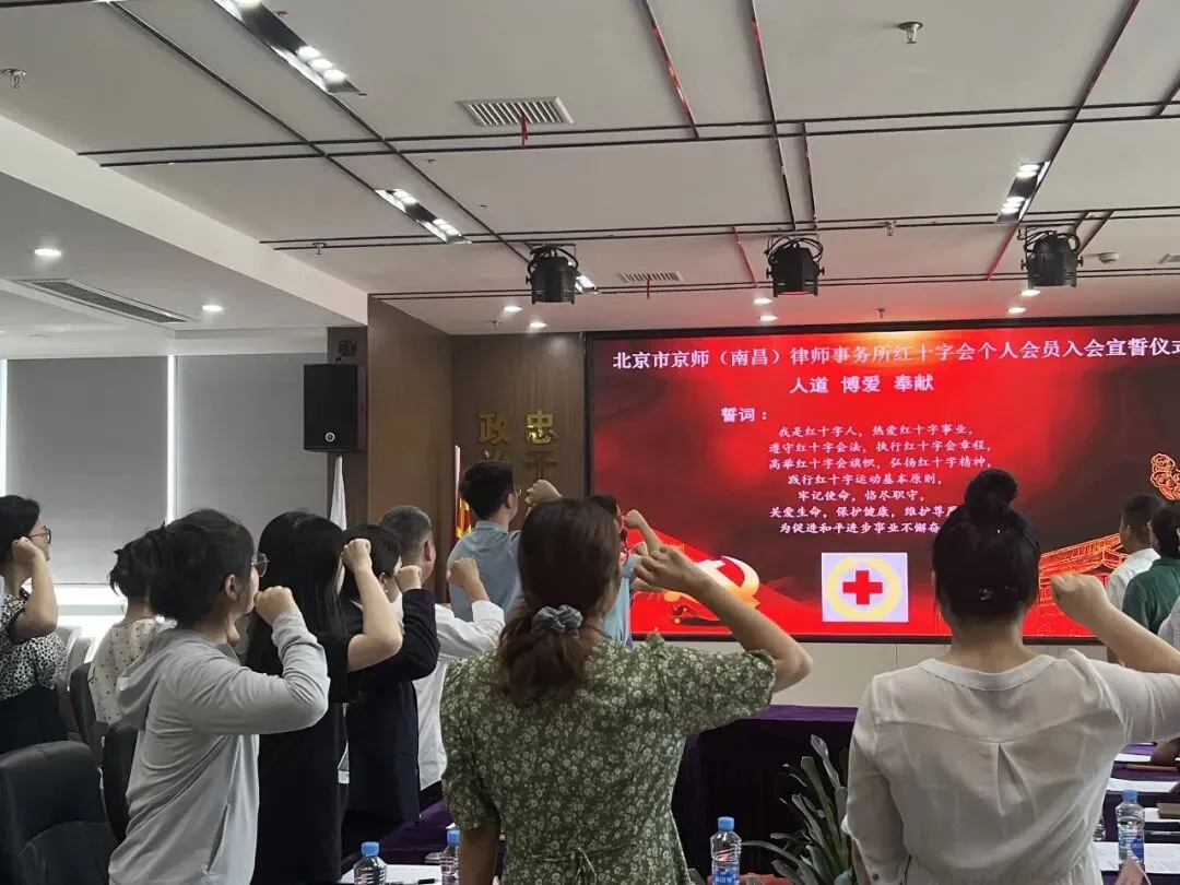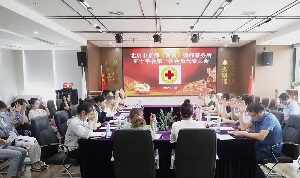 7月1日,北京市京师(南昌)律师事务所红十字会第一次会员代表大会胜利召开,标志着南昌市首个律师行业成立。东湖区红十字会主要负责人出席大会。