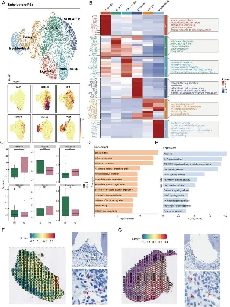 鉴定出6种成纤维细胞亚型,SAA1+Fib在牙周炎中比例独增,富集趋化和炎症通路,且在结合上皮下结缔组织聚集。