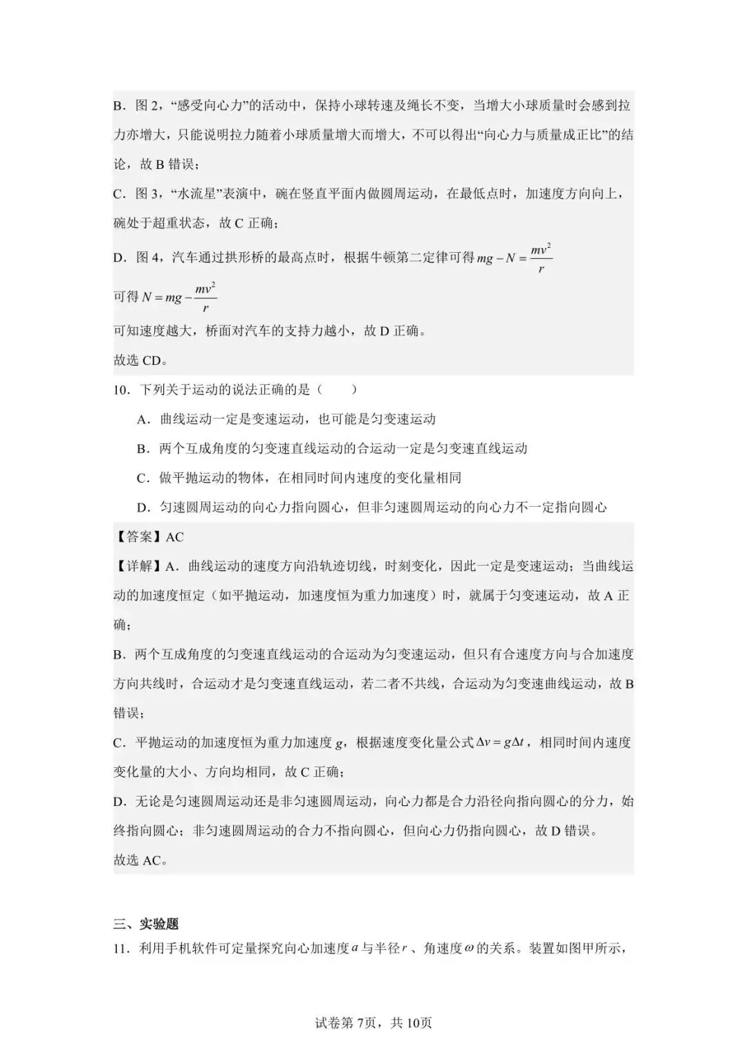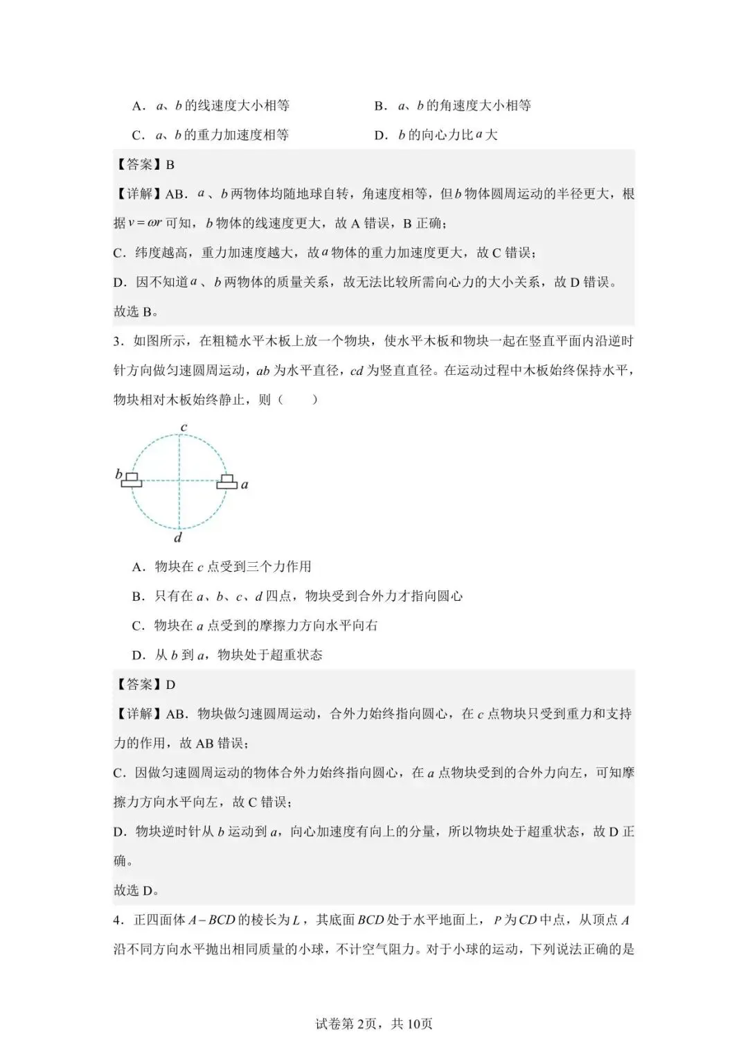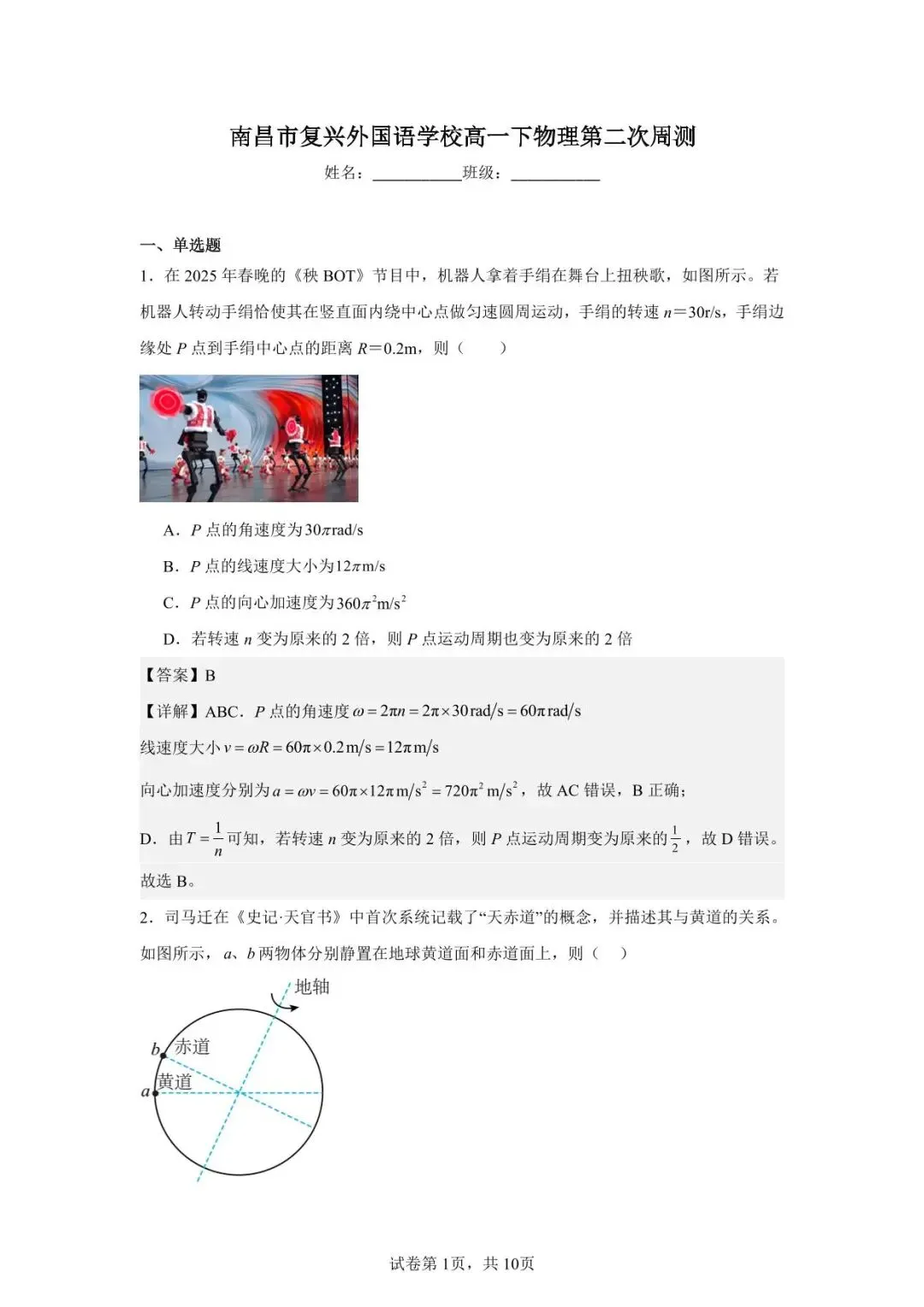 >南昌市复兴外国语学校高一下物理第二次周测解析