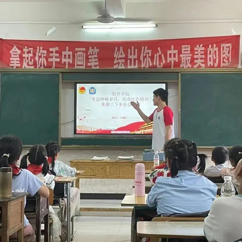 信息工程学院“夏乡信歌”团队的队员们到仙三都村小学为当地留守儿童开展暑期安全防溺水教育,航空服务与音乐学院实践队到达梅岭学校,为同学们开展礼仪风采、礼仪知识课堂教学。实践活动增强留守儿童童心向党、家乡有我的精神力量和社会责任心,助力乡村振兴发展。