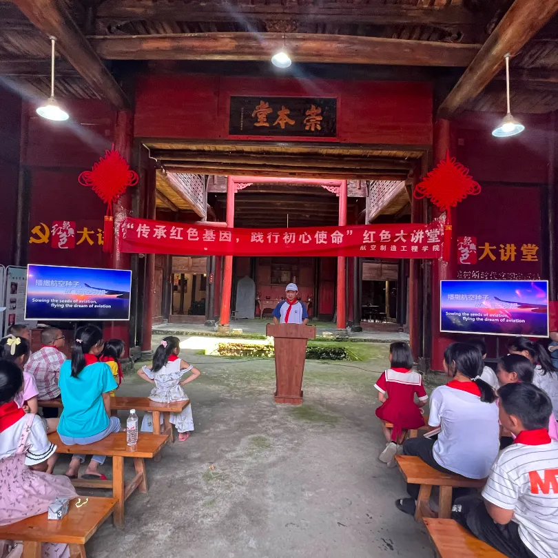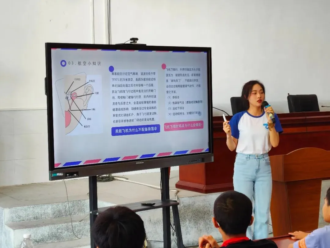 社会实践队来到横峰县葛源镇溪畈村、宜黄县龙井村、浮梁县臧湾乡,借助丰富的实物、模型、视频、图片、文字素材,生动科普航空知识,传播航空文化,培植航空报国精神。在四面环山的方志敏希望小学,航空制造工程学院队员们从“东方红”人造卫星发射成功讲起,带领同学们一起回顾我国航空事业的辉煌成就,在孩子们心中播种下航空梦想的种子。