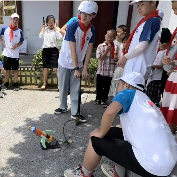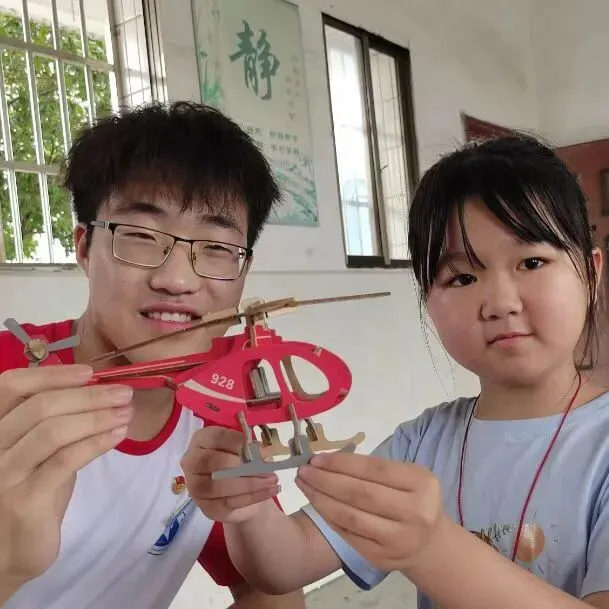 孩子们在动手学习并组装光学转盘、发动机曲轴后,队员们指导示范,鼓励同学们利用可乐瓶、泡沫板、卡纸等工具制作“水火箭”,开展制作大比拼活动。飞行器工程学院航空文化宣讲队为三阳镇中心小学带去了航模以及价值1万元的各类书籍,并进行航模表演及手工模型制作,为小朋友们上了一堂生动有趣的航空文化科普课。童心港湾接牌 关爱留守儿童