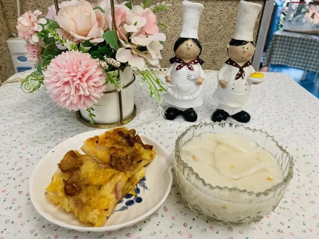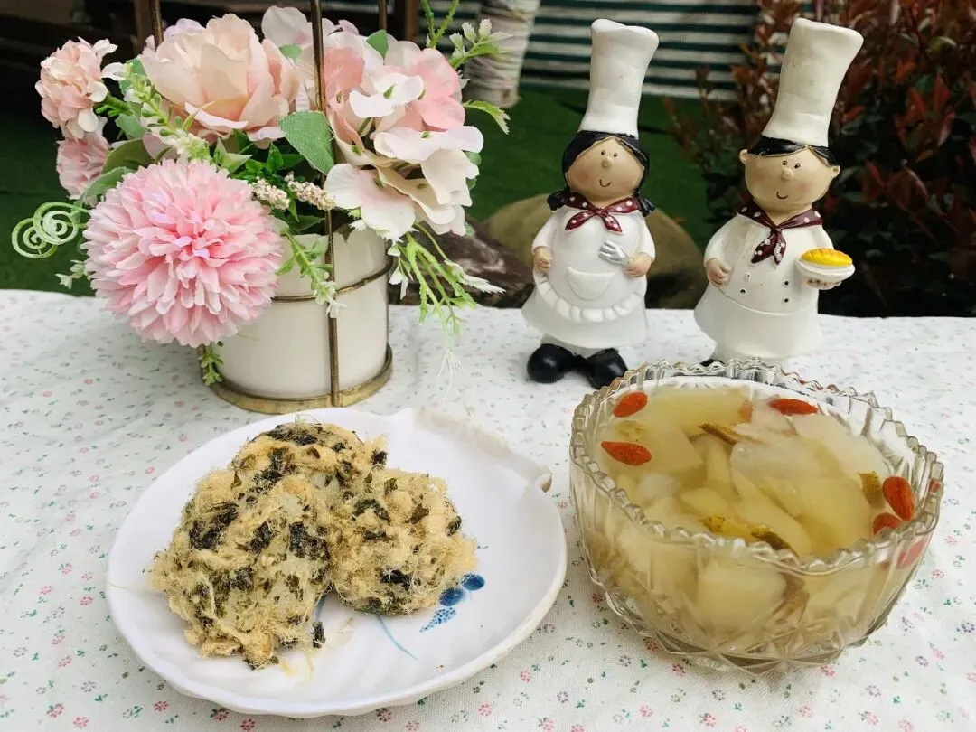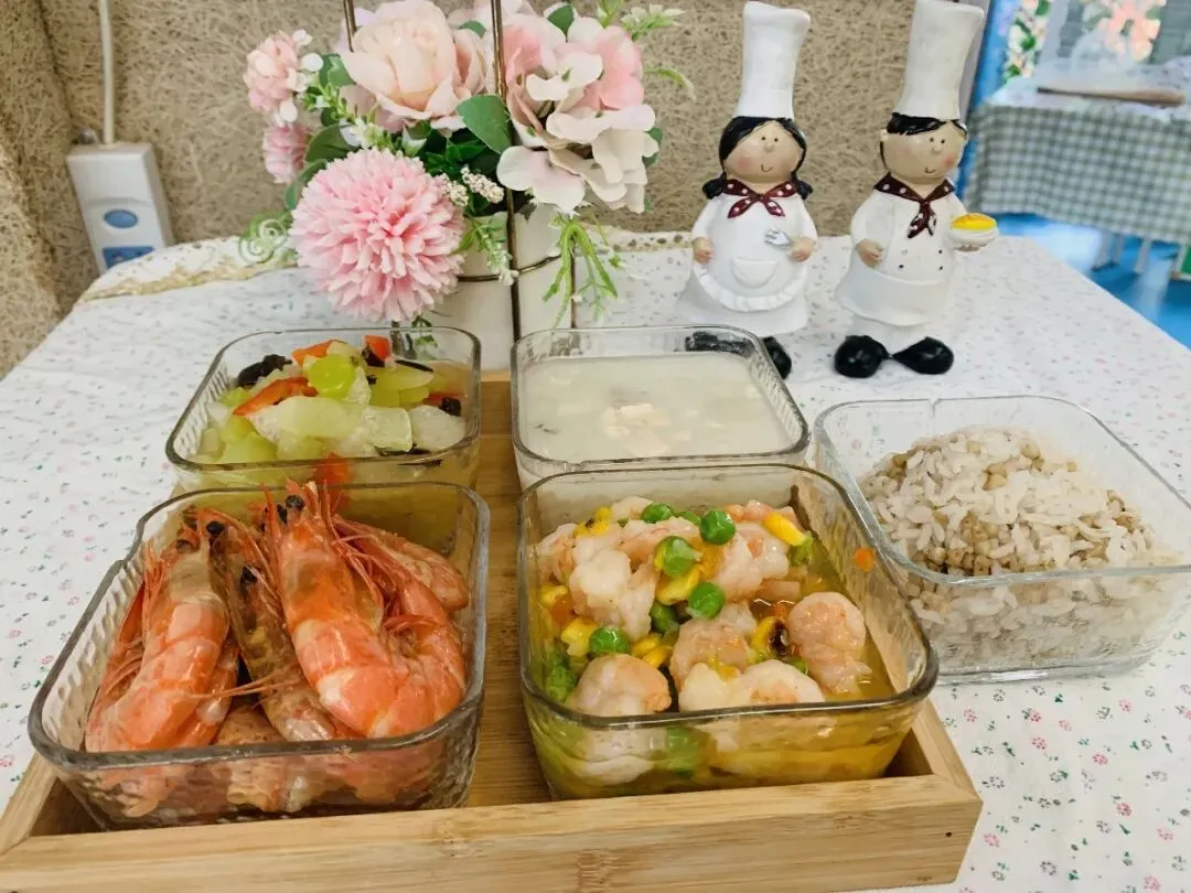 过敏代餐:瑶柱肉沫鸡蛋羹→五彩梅花肉片