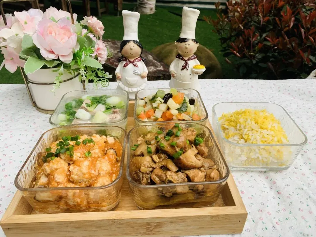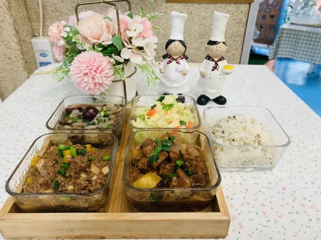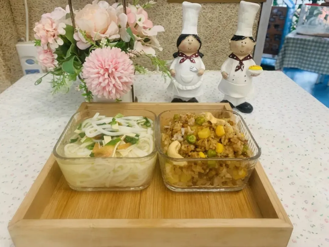 主食:白米饭(大米托小班50g 、中班55g、大班60g)