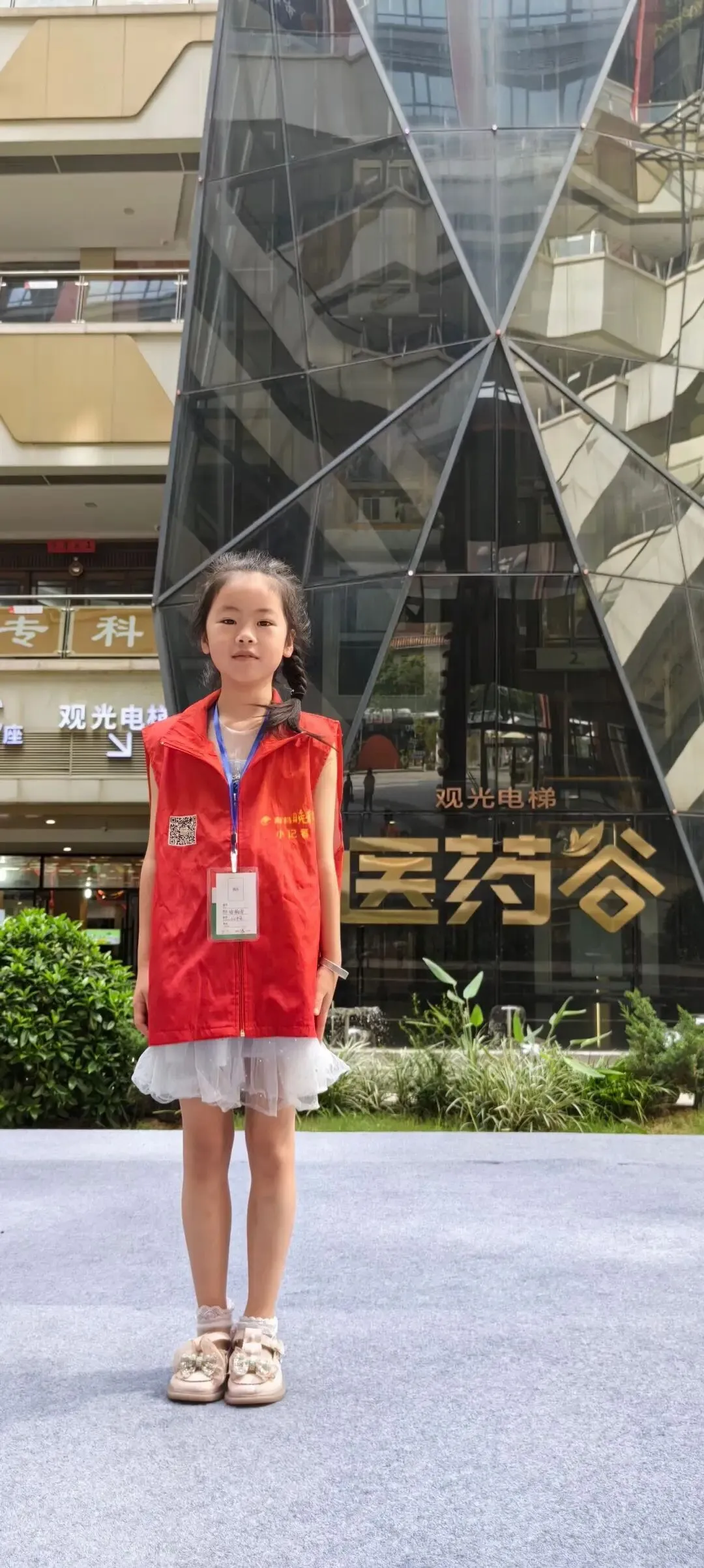 校内,她乐于助人,经常帮助班上学习困难的同学;校外,她把假期穿成红色——不是舞台上的聚光灯,而是某医院门诊大厅里的那件志愿者红马甲。她把公益当作另一种“讲解”——不是站在台上,而是在导诊台前的一次次指引。每逢周末和节假日,她常出现在医院门诊大厅,帮老人操作挂号机、给哭闹的小患者递颗糖、陪等候的爷爷奶奶聊天。她积极投身于社会实践中,用实际行动传递社会正能量。从国家安全教育到禁毒宣传,从海洋保护到社区服务,她用脚步把“红领巾”的誓言和温暖种进生活的每一个角落。正因如此,她先后被授予“全国优秀志愿者”“国家安全卫士”“禁毒宣传大使”等称号。尤为可贵的是,她的公益实践与红色宣讲相辅相成,形成了从学习、宣讲到践行的完整闭环。这些经历深刻地锤炼了她的能力,让她在实践中领悟奉献的真谛,坚定了服务人民、回报社会的志向。心中有火,眼里有光,手上有温度。她把“助人为乐”四个字,从口号变成了那件穿了反复穿洗的红马甲,变成了那个永远愿意伸出的温暖小手。