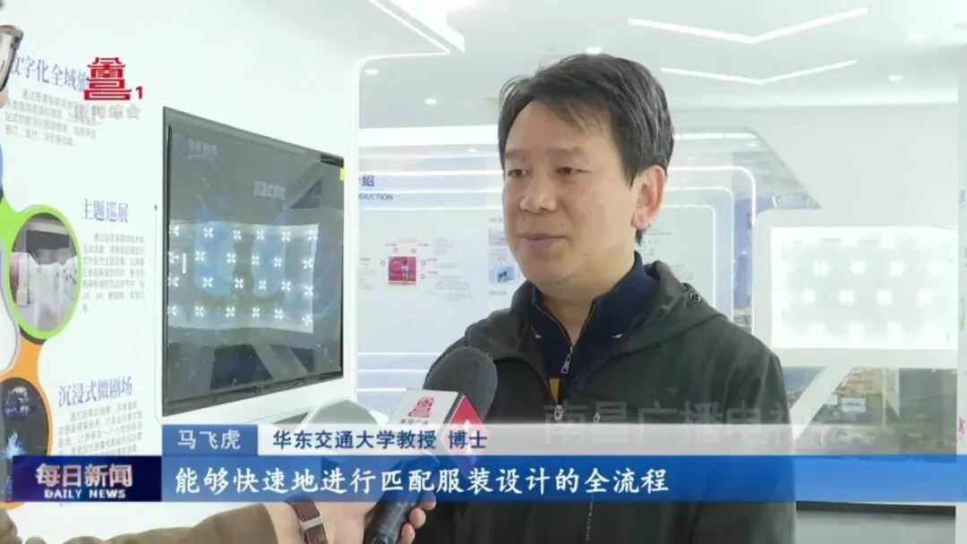 华东交通大学教授、博士马飞虎:“比如说在数字面料方面,如果说用实际的面料去做,那它数据量非常大,形成数字面料之后,建立我们的数字面料库,能够快速地进行匹配服装设计的全流程,使得企业节约成本。我们在实验室做的东西,必须要做一个验证,企业也为我们提供了一个很好的平台,包括是否适合市场,是否适合企业的发展,只有通过到了企业才能做验证。”