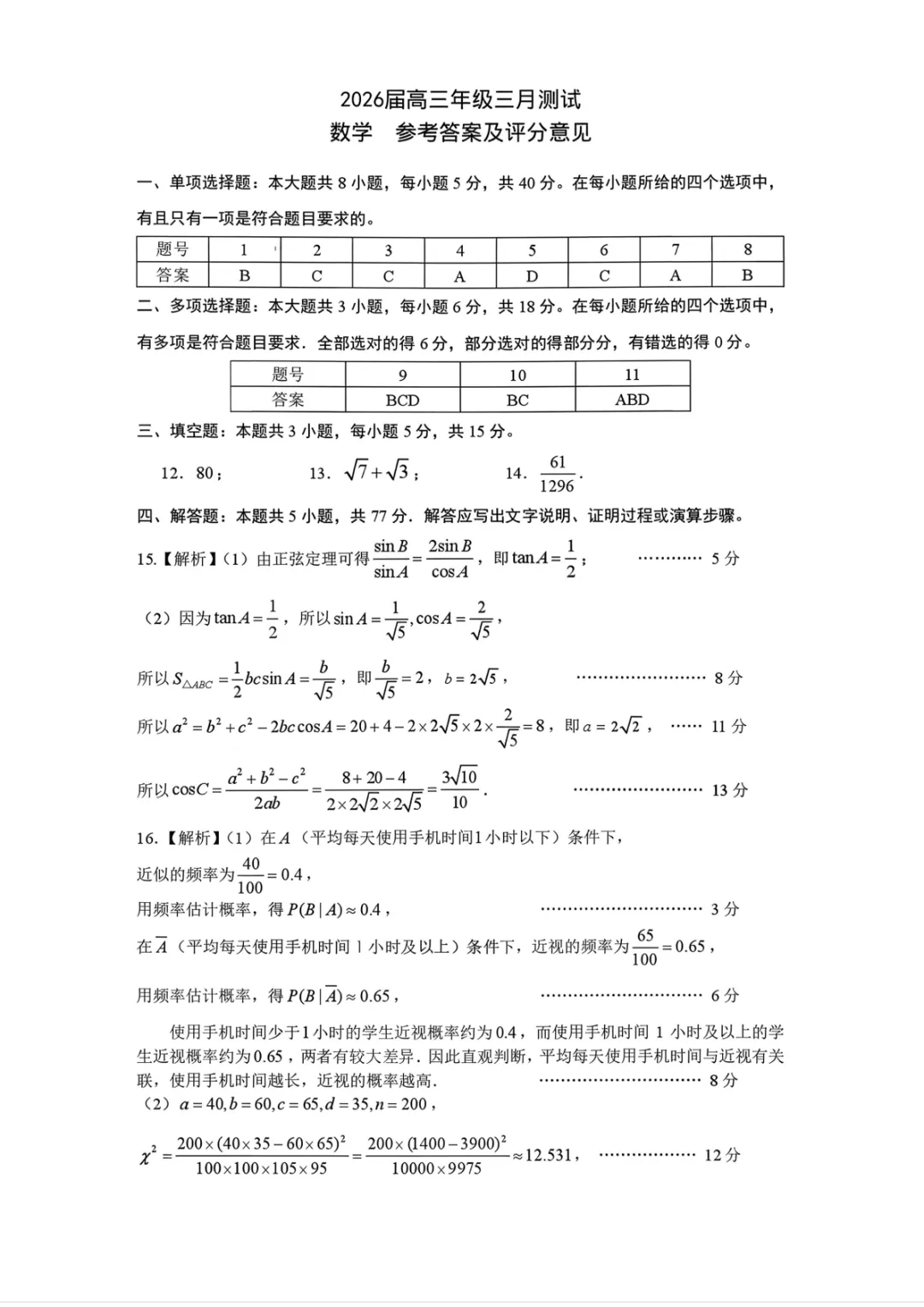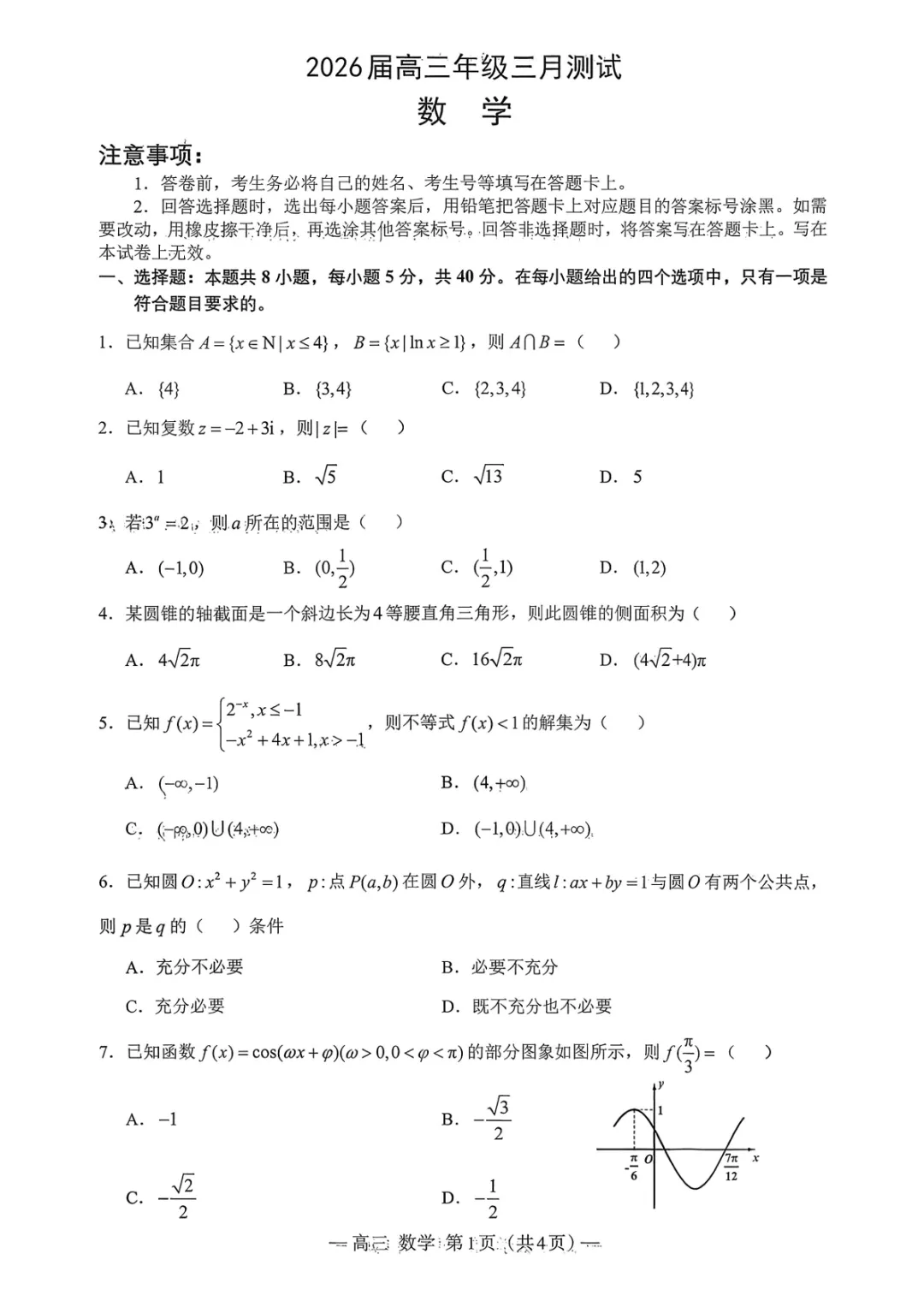 【南昌一模全科】江西省南昌市2026届高三年级三月测试