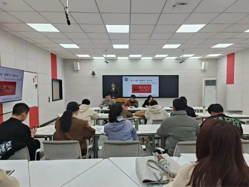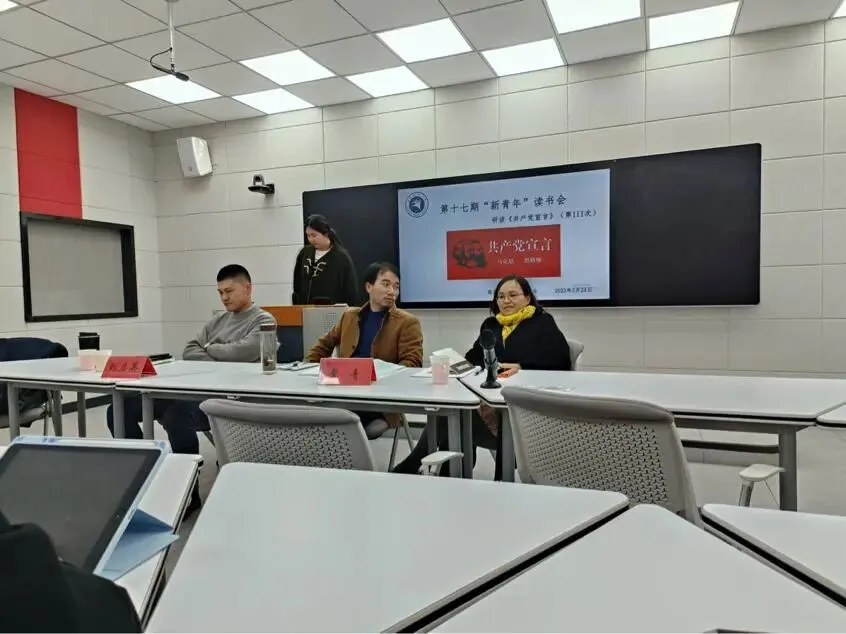 为引导同学们走进原著、品读经典、感悟真理,3月24日晚,在南昌航空大学大学生活动中心345智慧教室,马克思主义学院举办了以研读《共产党宣言》(第Ⅲ期)为主题的第十七期“新青年”读书会。此次活动南昌航空大学马克思主义学院副院长、研习会指导老师常青、马克思主义学院刘启英博士点评指导、刘昕老师出席。