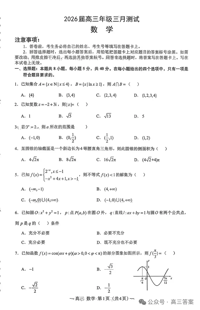 >【南昌一模】南昌2026届高三年级三月测试全科下载