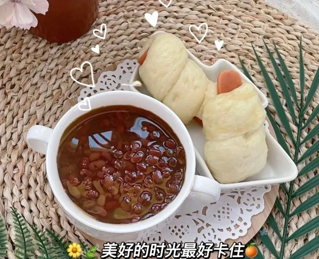 火腿卷、红豆汤