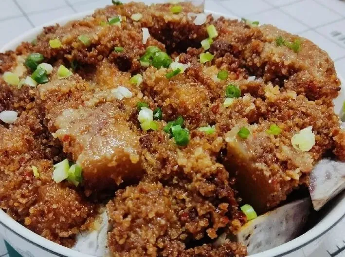 芋头粉蒸肉、西兰花黑木耳炒火腿肠