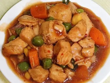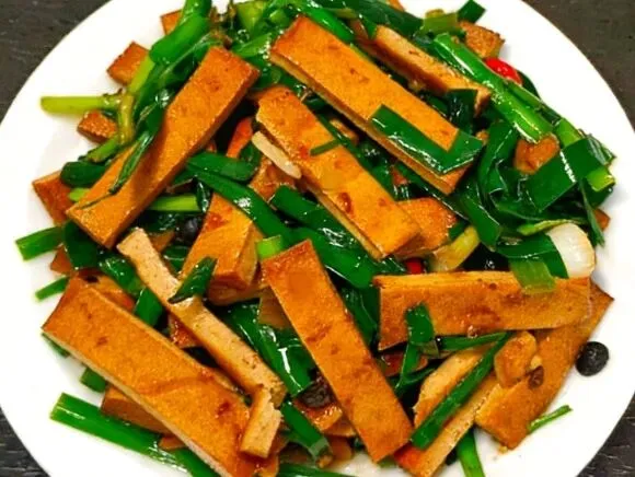 五彩鸡丁、韭菜炒酱干
