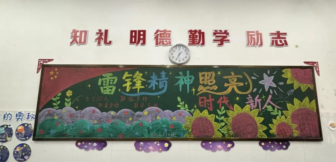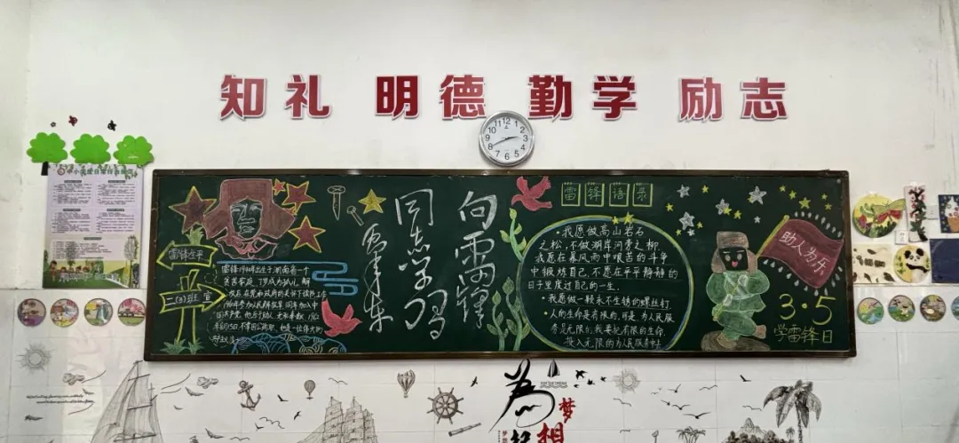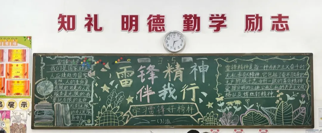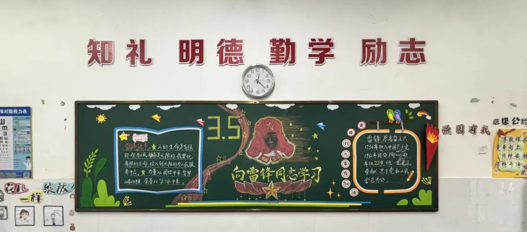 各班紧扣学雷锋主题精心布置黑板报,一笔一划勾勒榜样形象,一字一句书写雷锋精神,让教室的每一面墙都成为学雷锋教育的小阵地。孩子们在驻足观看、交流讨论黑板报的过程中,重温雷锋事迹、熟记雷锋语录,深刻理解了雷锋精神的内涵,更在心中种下了向榜样学习、乐于奉献的种子。