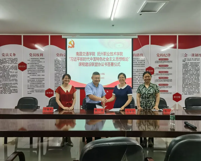 随后,抚州职业技术学院马克思主义学院院长戴奔与南昌交通学院马克思主义学院副院长汪吉珍签署了两校课程建设联盟协议书。联盟协议书签署后,抚州职业技术学院马克思主义学院将与南昌交通学院马克思主义学院常态化开展联合教研活动。本次集体备课会是抚州职业技术学院马克思主义学院举行的第一次跨校“手拉手”集体备课实践,内容丰富,形式直接有效,开阔了教师的视野,与会教师纷纷表示,此次活动让人意犹未尽,印象深刻,受益匪浅,为高质量开设思政课发挥了重要作用。