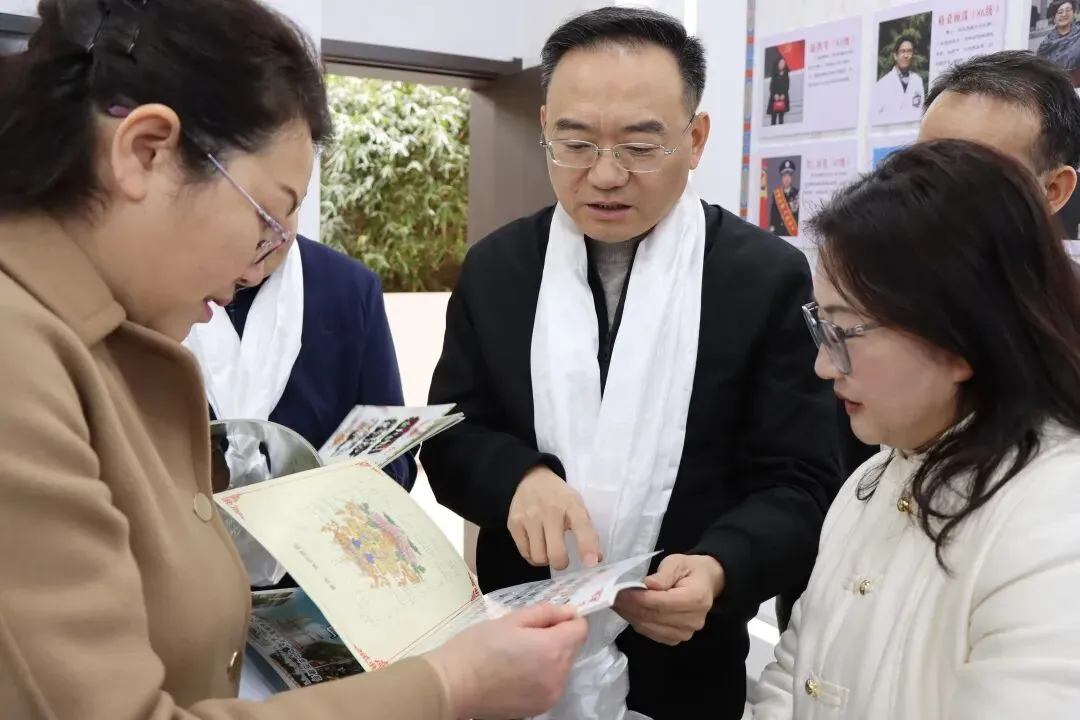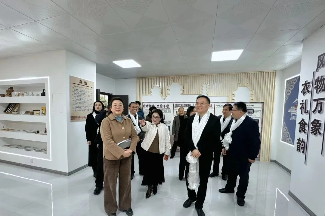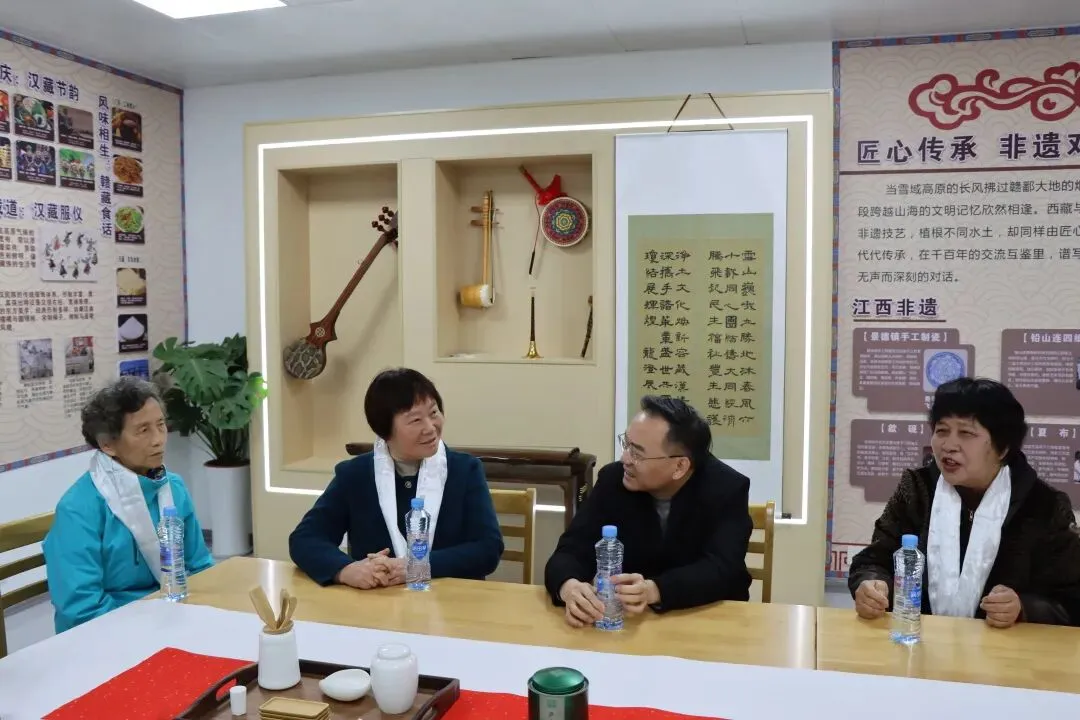 弘远楼前,藏族教师以传统礼仪向调研组敬献哈达,表达热烈欢迎。随后,李新华一行参观了雪莲·杜鹃民族文化体验馆和洪石榴民族团结教育基地,详细了解学校依托体验馆和民族团结教育基地开展赣藏文化交流、民俗体验及民族团结教育的实践成果,并就如何做优民族团结进步教育工作提出了宝贵指导意见。