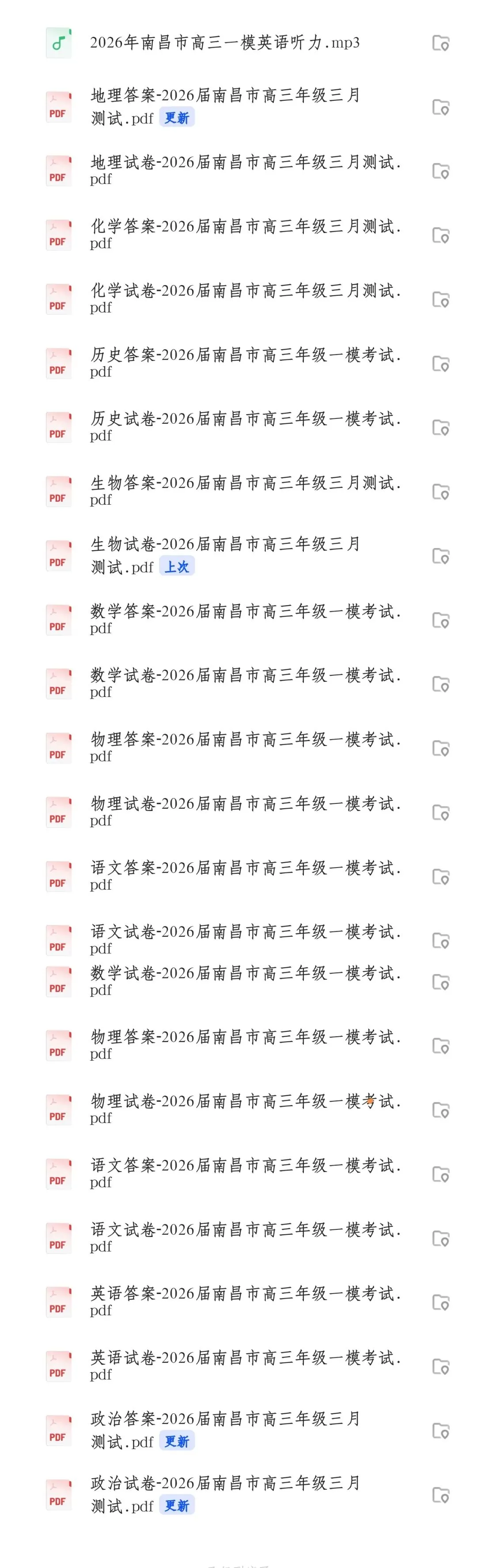 2026届南昌市高三年级一模考试(全科试卷含答案)