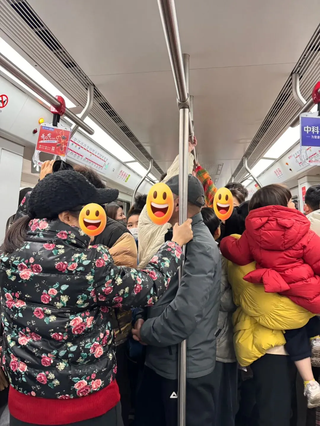2026年2月17日下午5点从家出发,到滕王阁.王勃广场看8点整的迎春烟火晚会。我们必须赶在七点前乘上地铁1号线,因为七点后地铁只出不进,我们转了三趟地铁,终于赶上最后一班可以进入的1号线。