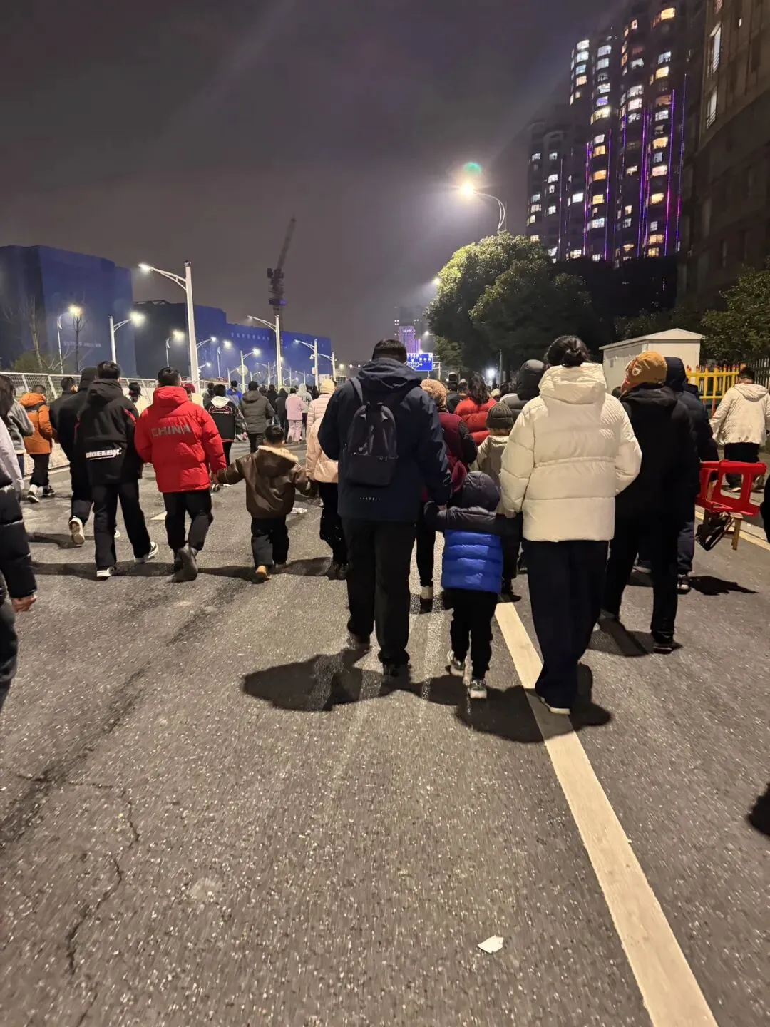 半小时的迎春烟火晚会,在人们的欢呼声中很快结束,人们还久久沉浸在激动之中,广播里响起结束语,请人们有序离开广场。我回身看见高楼的一扇扇窗户前站着看烟火的家人们,真羡慕啊,每年国庆和春节可以在家看烟火晚会。