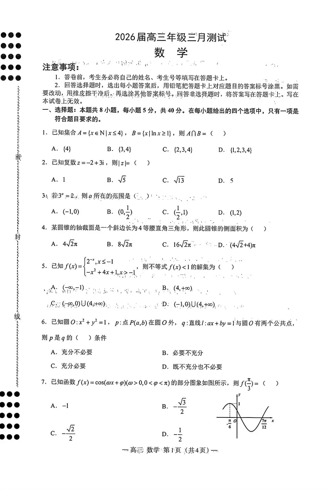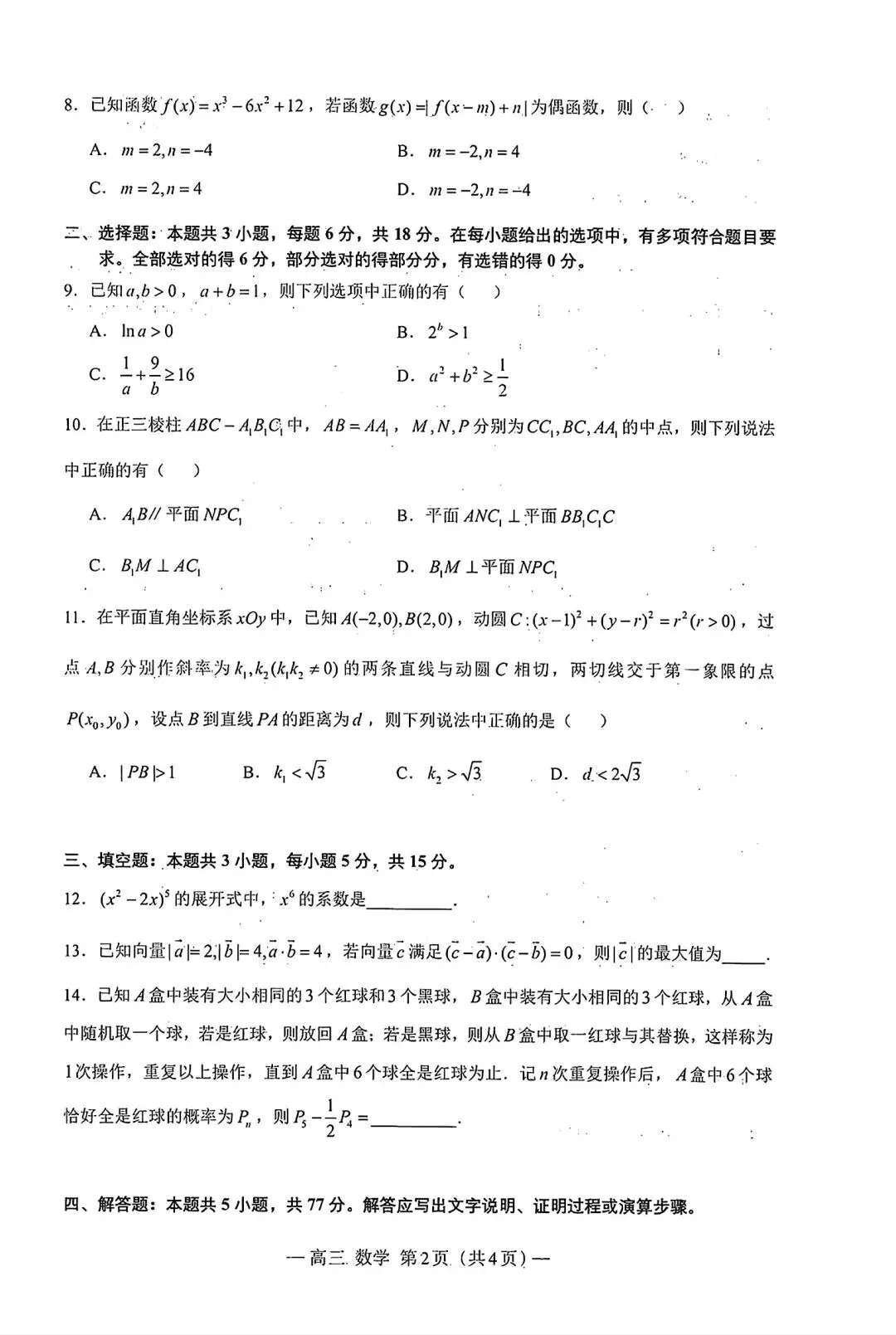南昌一模全科|江西省南昌市2025-2026学年高三下学期一模测试试卷及答案