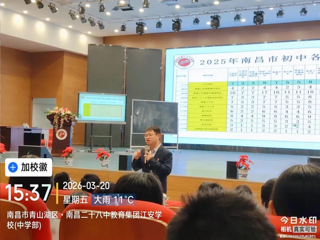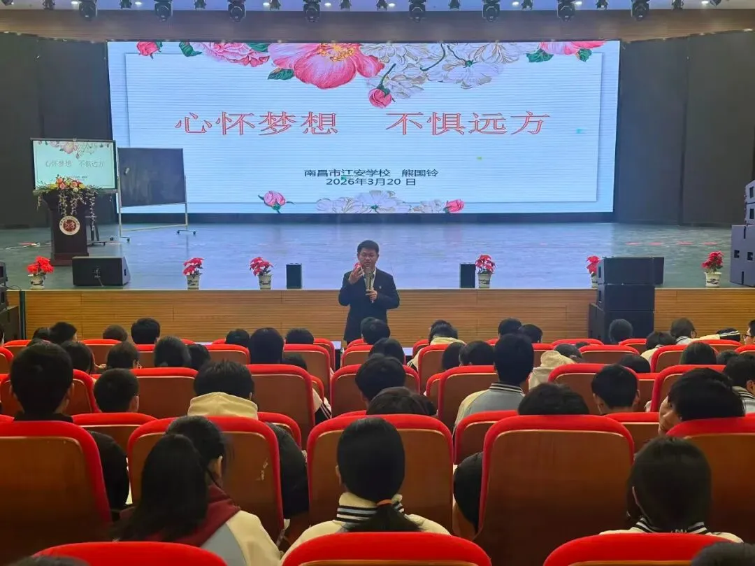 2026年3月20日,南昌二十八中教育集团江安学校隆重召开匠心大讲堂之心怀梦想,不惧远方。本次大会由熊国铃校长主讲,全体初二师生齐聚一堂,共赴这场以梦为马、砥砺前行的成长之约。