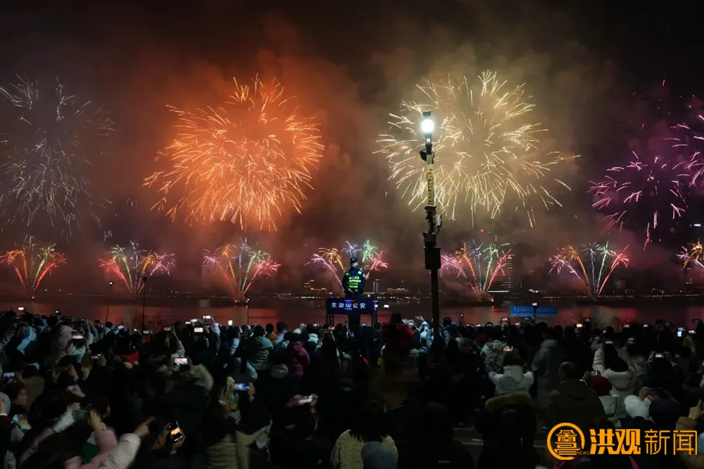 中国网友也纷纷感动:“军人有担当,人民有素质,在南昌具象化了。”还有网友发现动人画面:“大家都在拍烟花,只有公安是背对烟花的。”