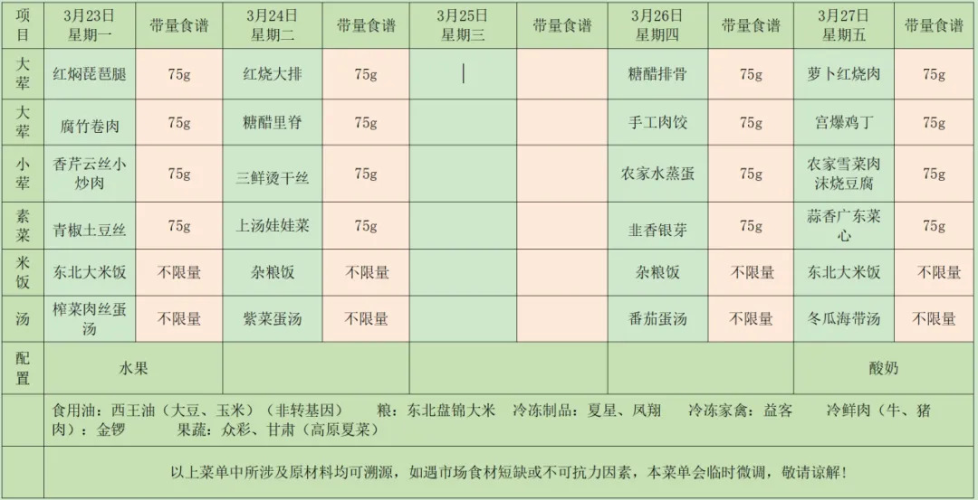 南昌路小学第4周营养食谱(3.23-3.27)