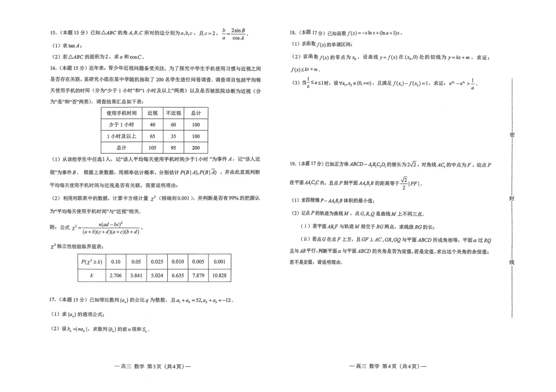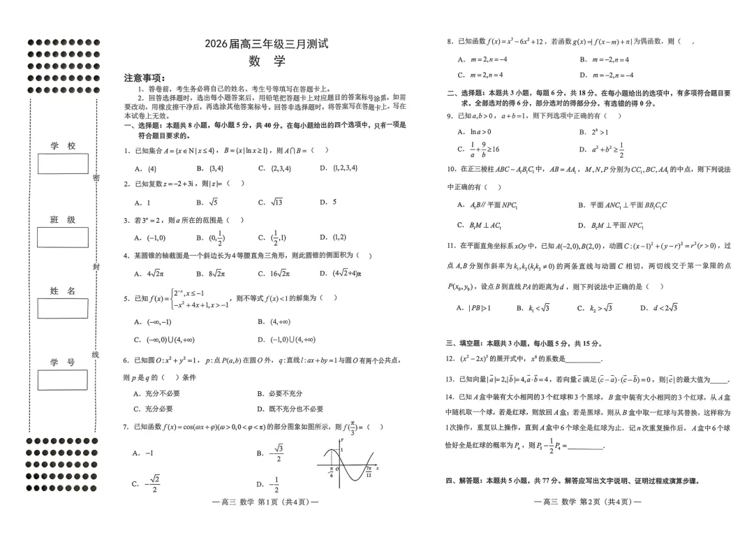 二、多项选择题:本大题共3小题,每小题6分,共18分。在每小题所给的四个选项中,有多项是符合题目要求.全部选对的得6分,部分选对的得部分分,有错选的得0分。