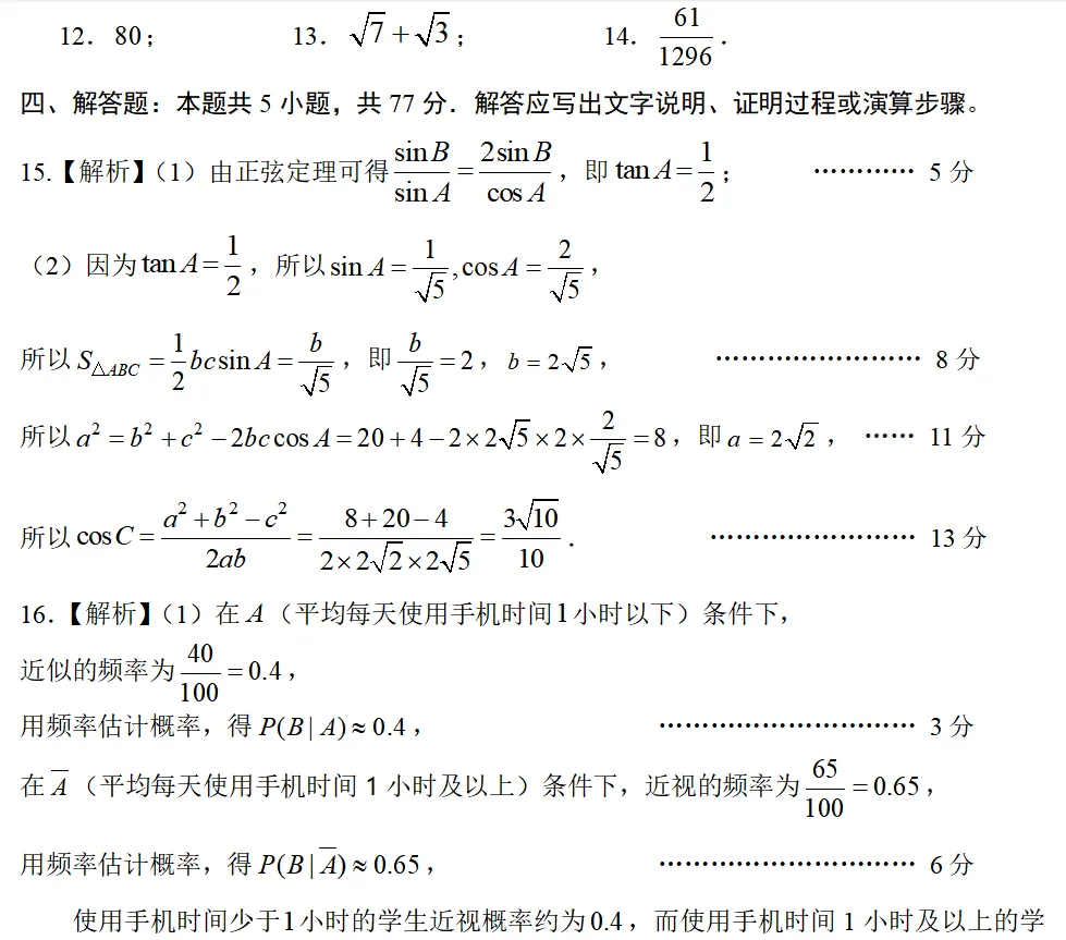 三、填空题:本题共3小题,每小题5分,共15分。