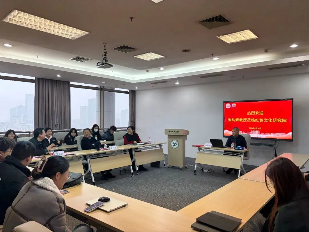 讲座在红色文化研究院正式召开。会上,渠长根老师为朱纯辉教授颁发聘书,聘其担任红色文化研究院特聘研究员。