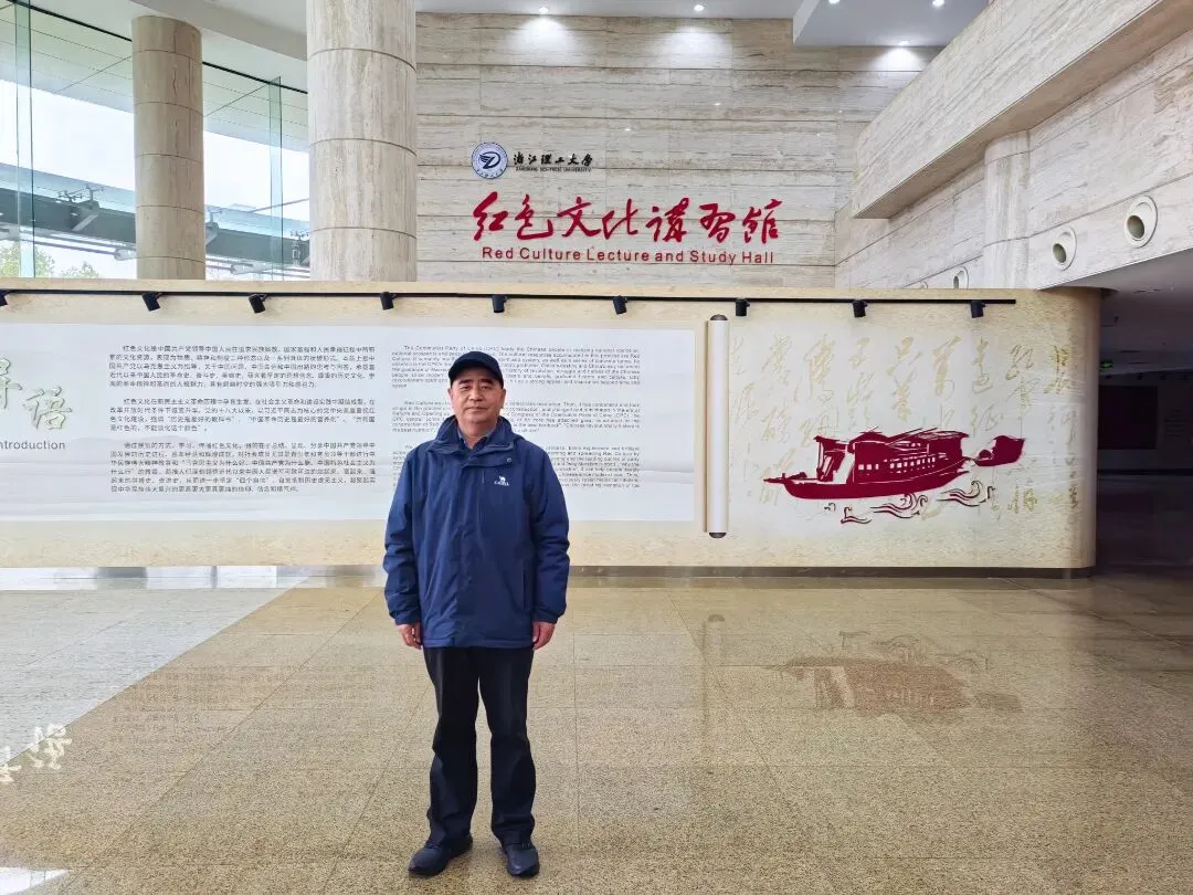 讲座前,朱纯辉教授在红信讲习团讲解员赵红鑫、徐丽媛的引导下参观我校红色文化讲习馆,系统了解红色文化的发展脉络与革命精神的传承故事,深刻感受红色文化的时代价值。