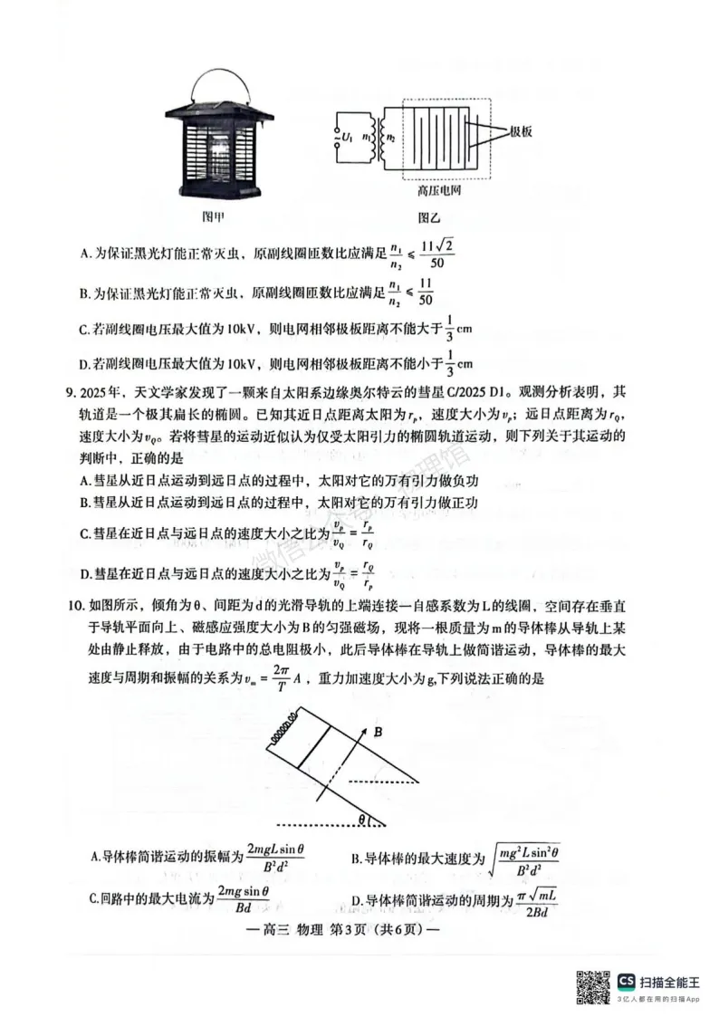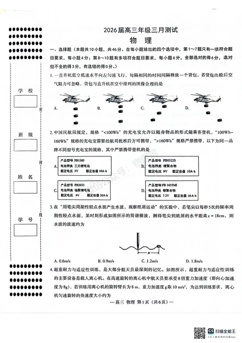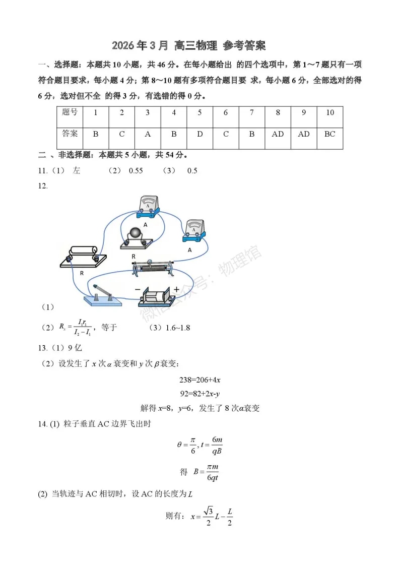 江西省南昌市2026届高三下学期三月(一模)测试物理含答案