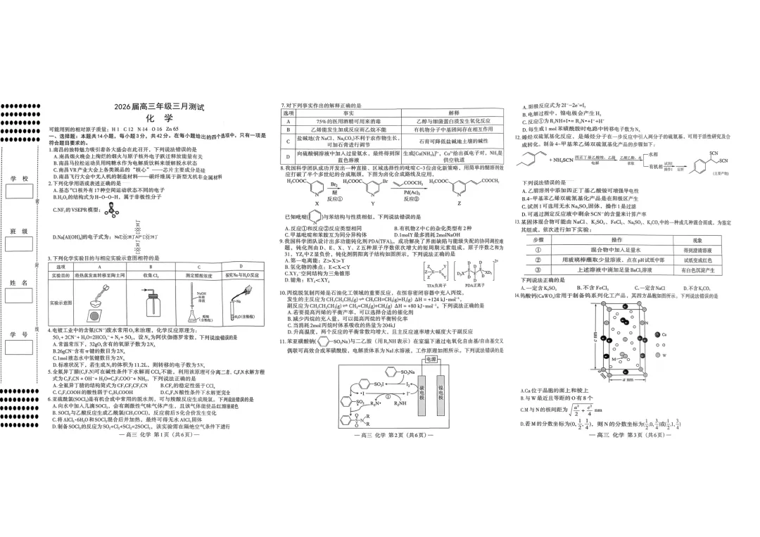 江西省南昌市2026届高三下学期三月(一模)测试物理含答案
