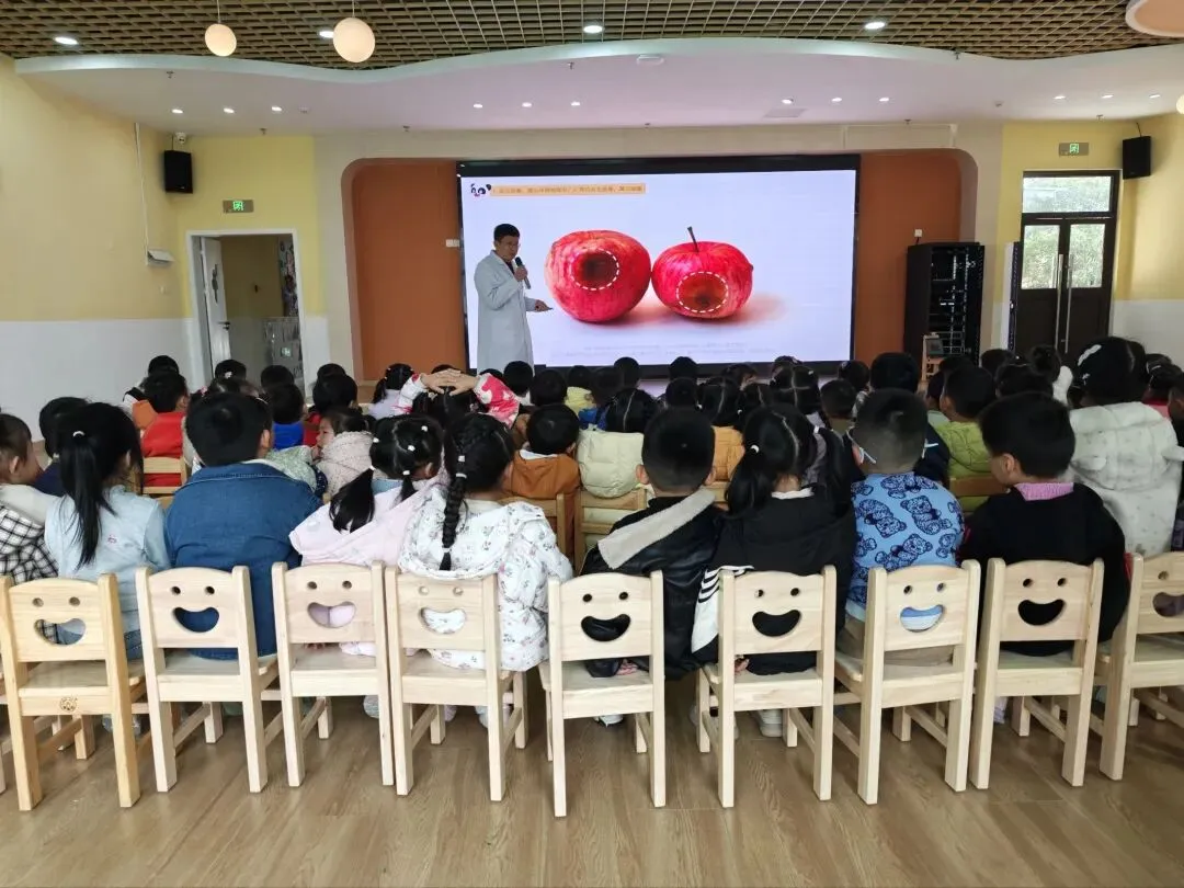 这一次,我们的课堂迎来了一位特别的老师——中一班左彦菲小朋友的爸爸。作为医生,这位“超人爸爸”穿上工作服,用通俗易懂又富有幽默的语气给孩子们上了一堂生动有趣的食品安全课,识破“坏食物”的小把戏。