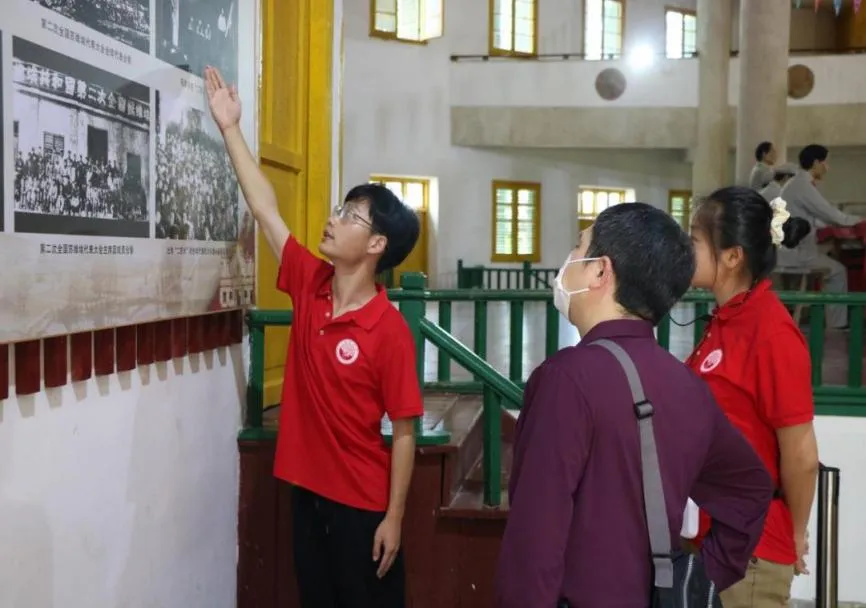 “追寻红色记忆”志愿讲解队队员向游客介绍当地革命历史