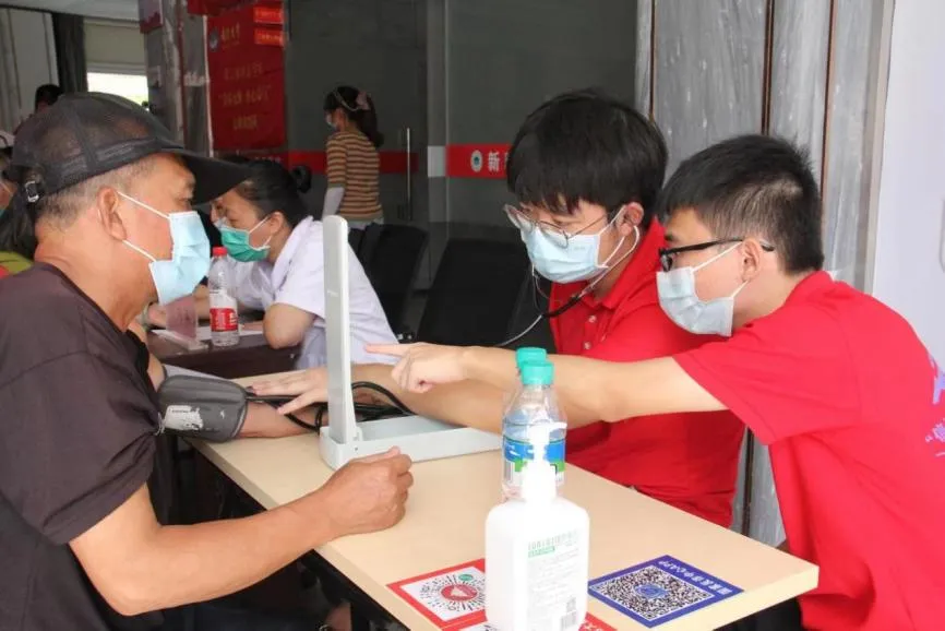 “青春无悔,医心益行”实践队队员为居民测量血压