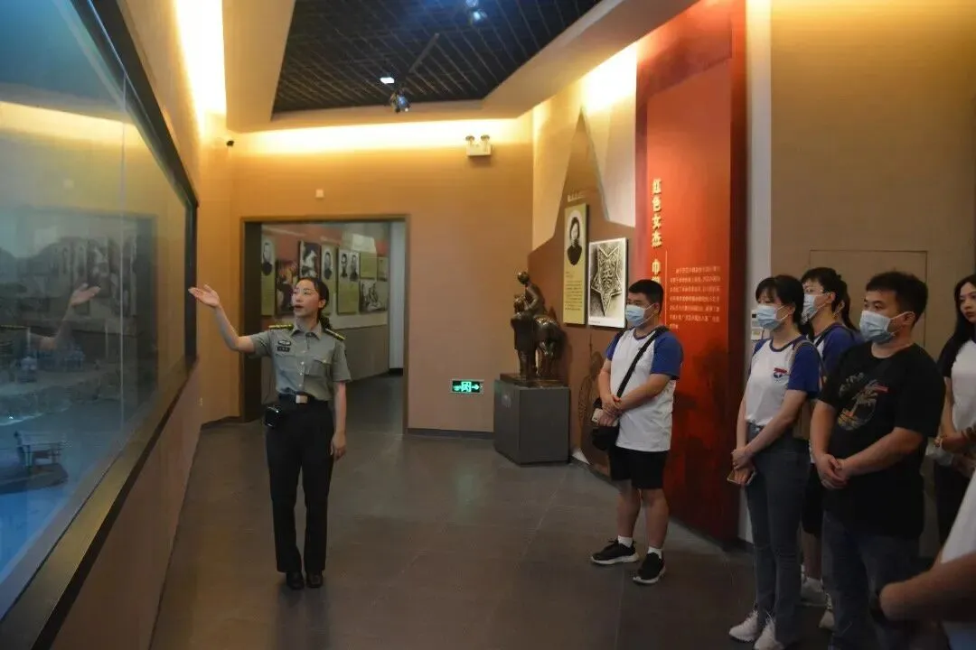 兴国是我国著名的苏区模范县、红军县、将军县,在此走出了56名共和国开国将军。6月22日上午,师生一行首先来到兴国县将军公园和苏区干部好作风陈列馆参观,在讲解员的介绍下了解将军们的英雄事迹、学习苏区干部的优良作风。在苏区时期,兴国县一共有23万人口,参军参战的达8万多人,为国捐躯有5万多人,全县姓名可考的烈士23179名。下午15时,队员们抵达革命烈士陵园,依次参观四个展厅并瞻仰纪念馆前的革命烈士英名牌,而后在散葬烈士陵园中为英烈们举行鞠躬和默哀仪式。在场师生深受触动,表达对先烈们崇高敬意的同时纷纷表示将更加珍惜当下来之不易的幸福生活。